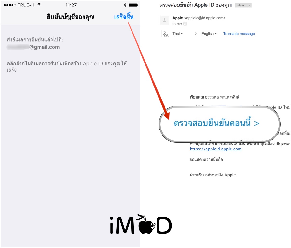 หลังจากที่ป้อนข้อมูลแล้ว ระบบจะขอให้คุณยืนยัน Apple ID ทางอีเมล คุณต้องยืนยัน Apple ID ของคุณก่อนจึงจะสามารถใช้งาน Apple ID ได้