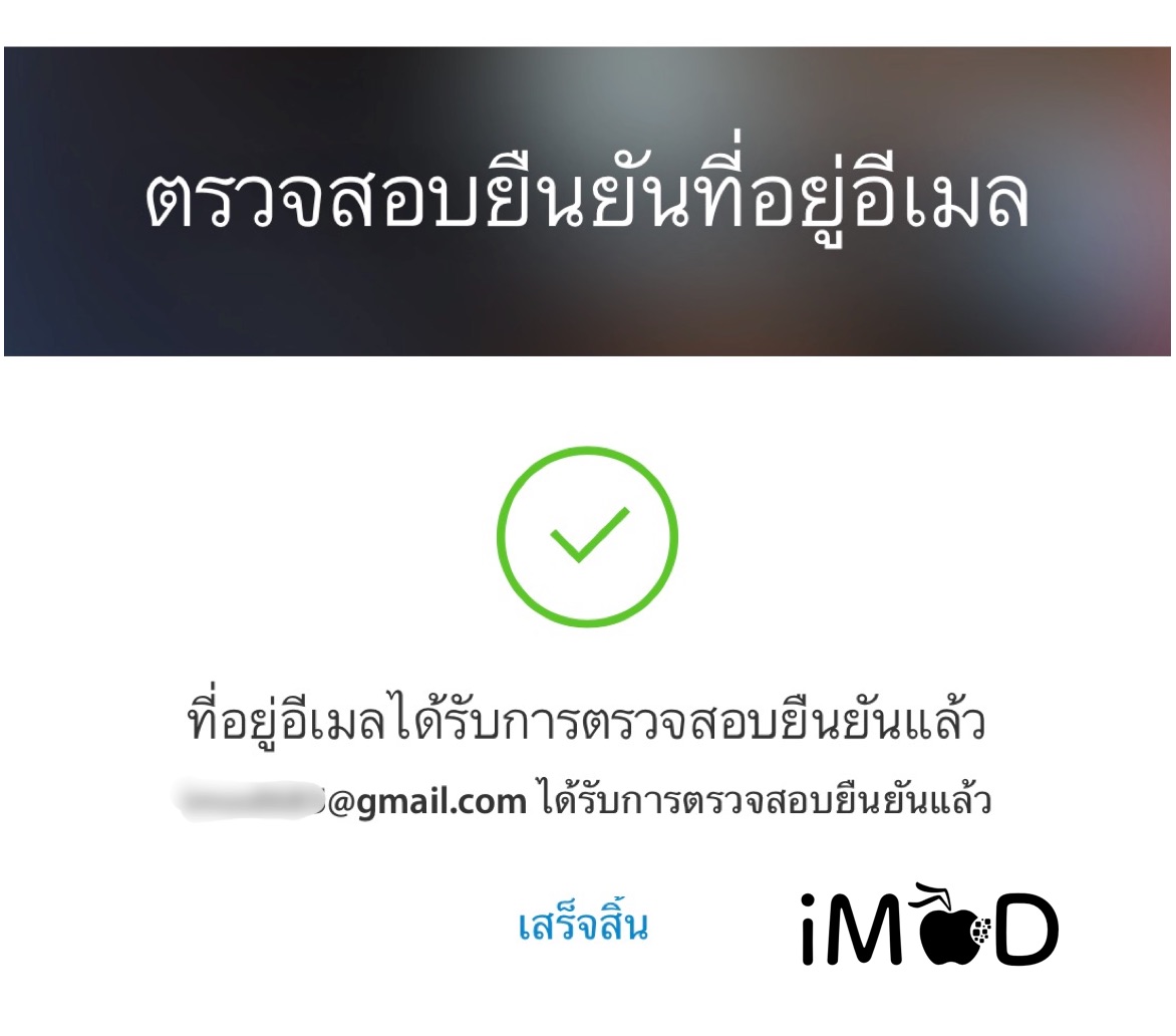 หลังจากยืนยันด้วยการกรอกอีเมล Apple ID และรหัสผ่านที่เพิ่งสมัครเรียบร้อย