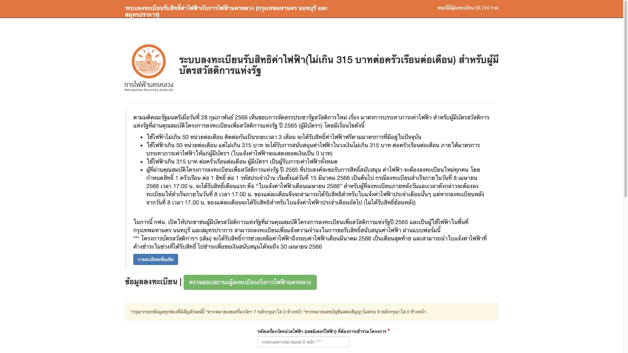 สำหรับใครที่ใช้น้ำและไฟไม่เกิน 315 บาทต่อเดือน และมีบัตรสวัสดิการรัฐ สามารถลงทะเบียนได้เลยตามเว็บไซต์ด้านล่าง👇