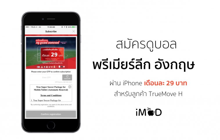 เลือกแถบ Live Play ภายใต้หัวข้อ TRUE SUPER SOCCER เลือกสมัคเลยที่ ดูบนมือถือ 29 บาท