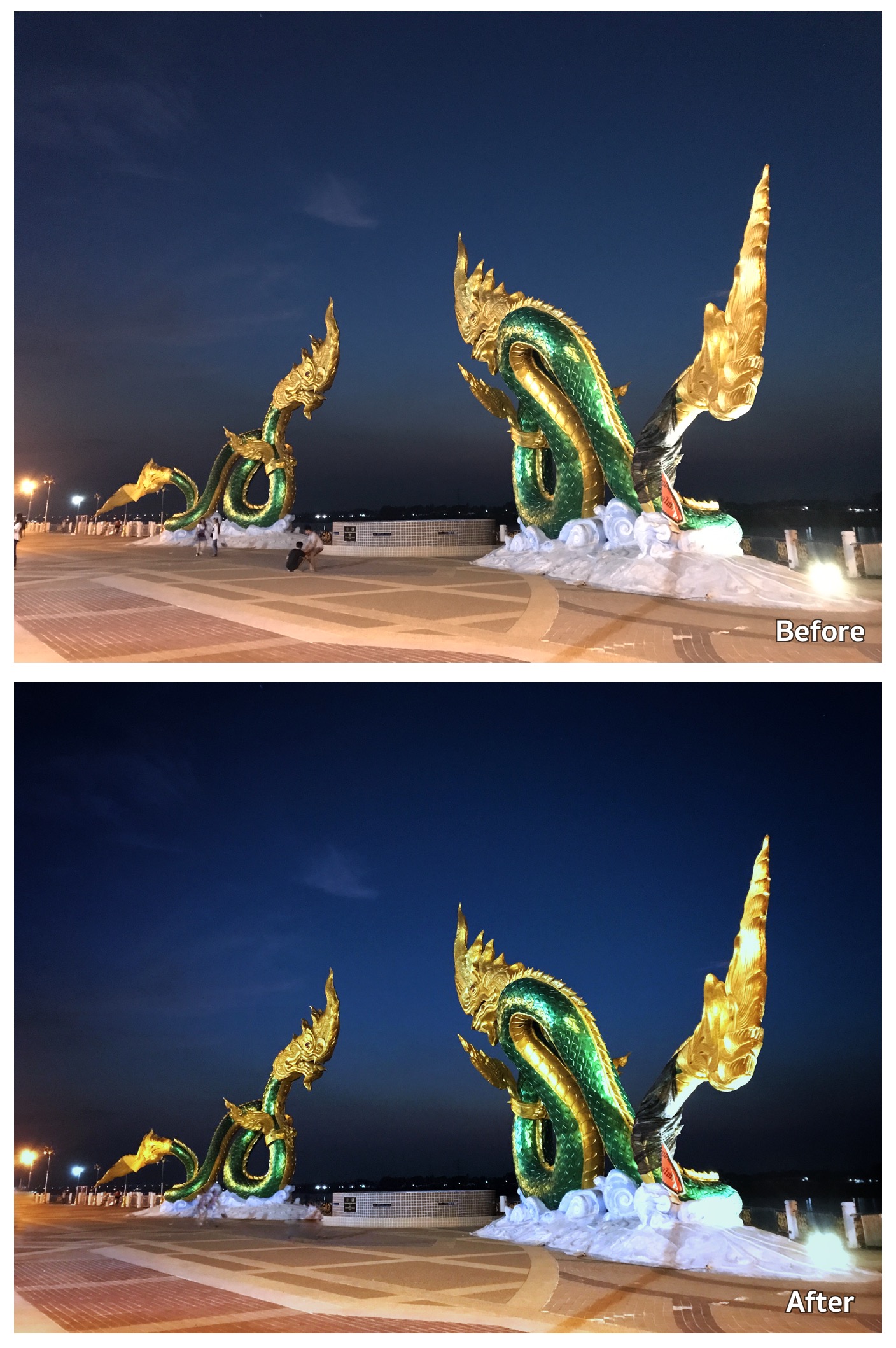 ทั้งนี้สามารถเลือกฟิวเตอร์ แต่งสี เพิ่มแสงเพิ่มเงา ฯลฯ ได้ตามความสะดวกนะครับ ผลงานที่ได้ Before vs. After เป็นดังนี้