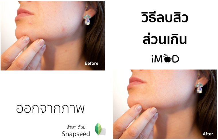 หรืออีกตัวอย่างครับภาพก่อนและหลังการลบสิวด้วย Snapseed ตามวิธีการที่แนะนำไปด้านบน