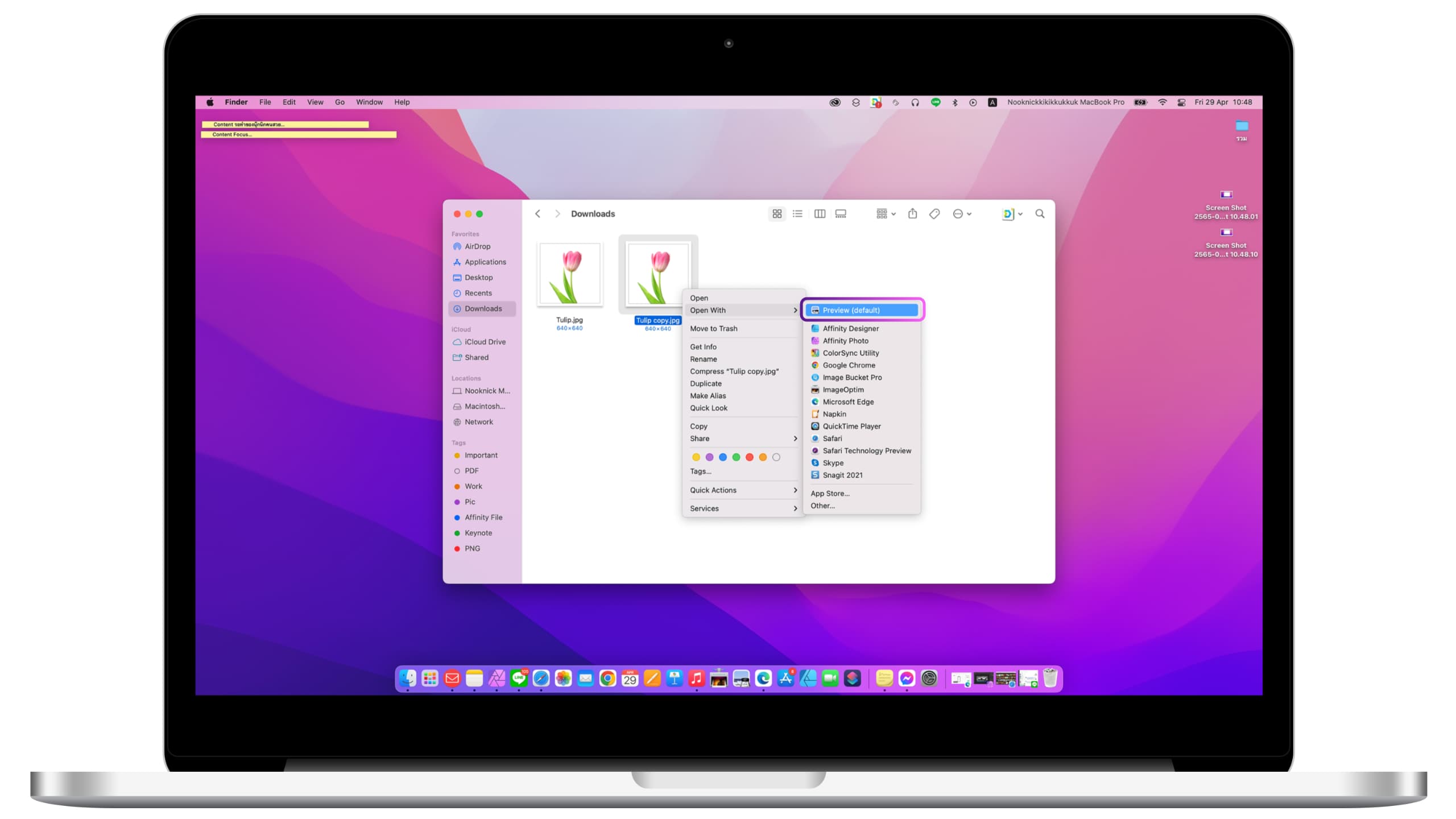2.คลิกขวาที่รูปภาพ > คลิก Open With แล้วเลือกเปิดด้วยแอป Preview