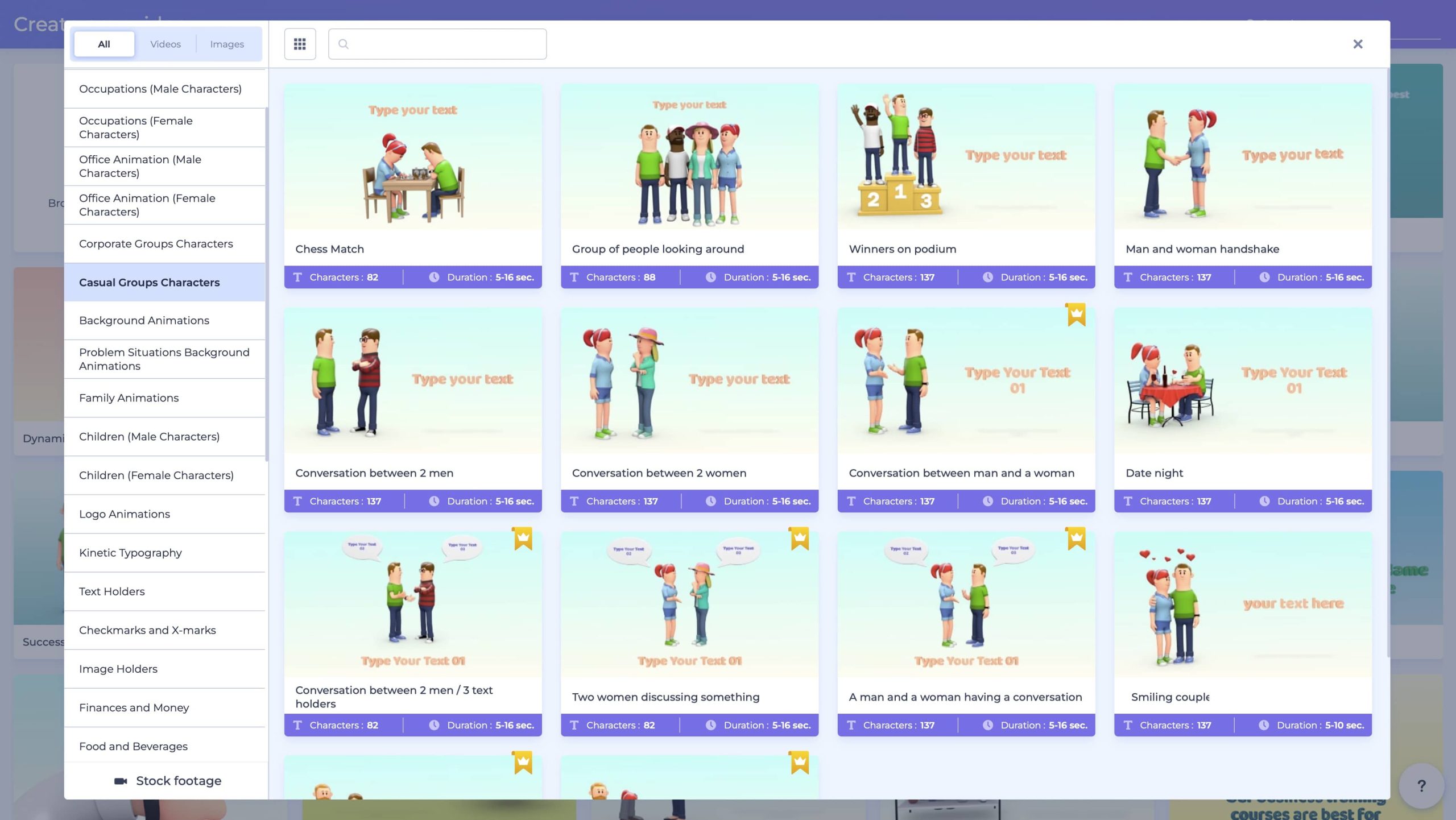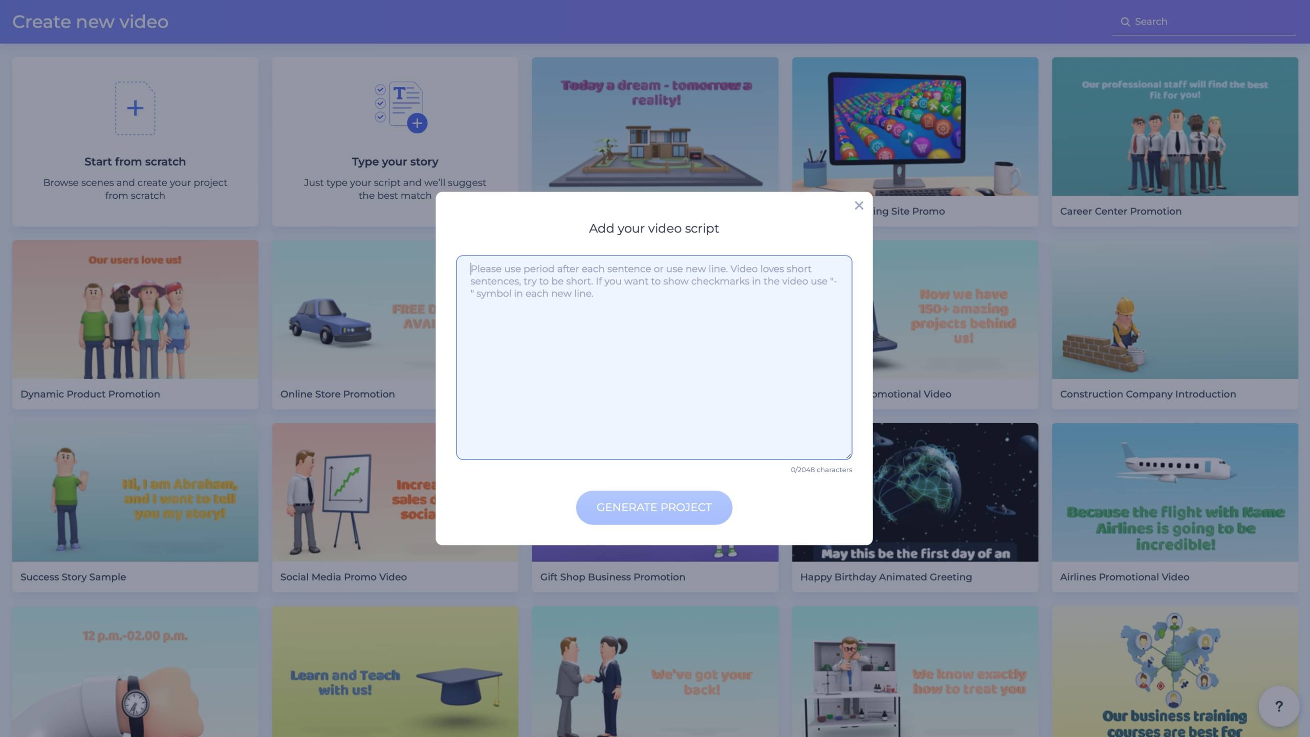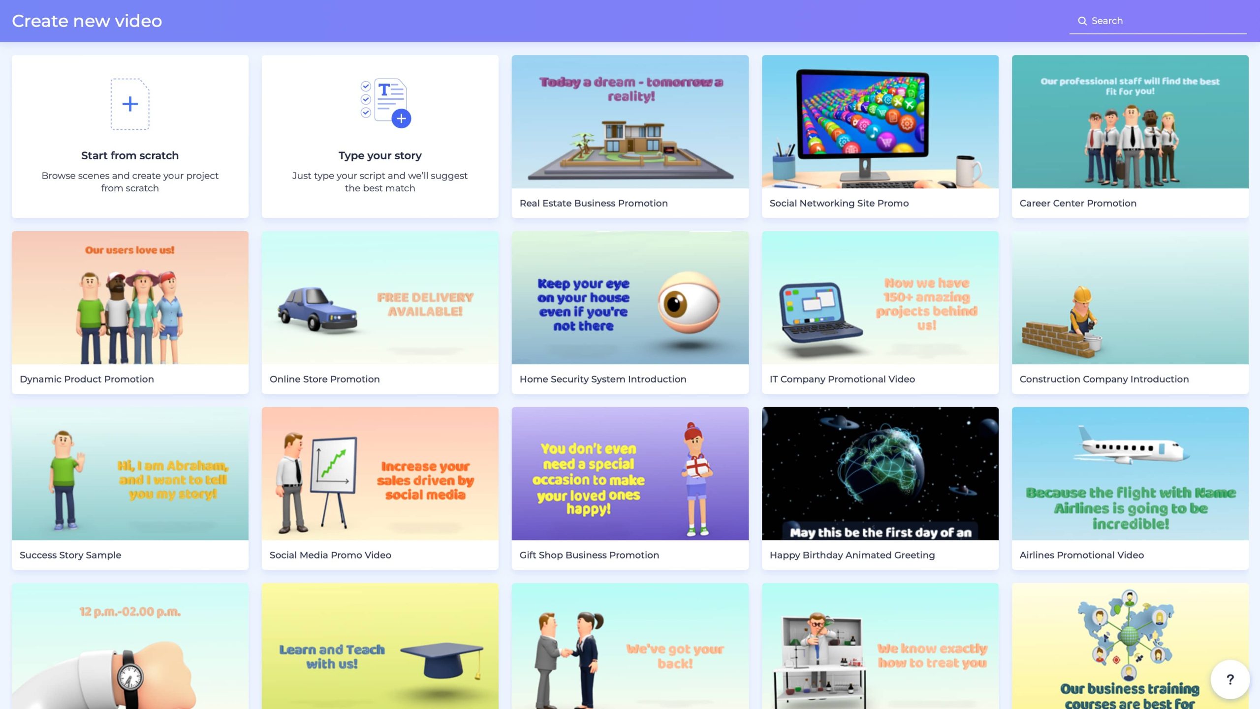 จะมาหน้าที่ให้เลือกสร้างวิดีโอในแบบต่าง ๆ โดยที่เราจะทำตามเทมเพลตของเว็บที่มีให้ก็ได้