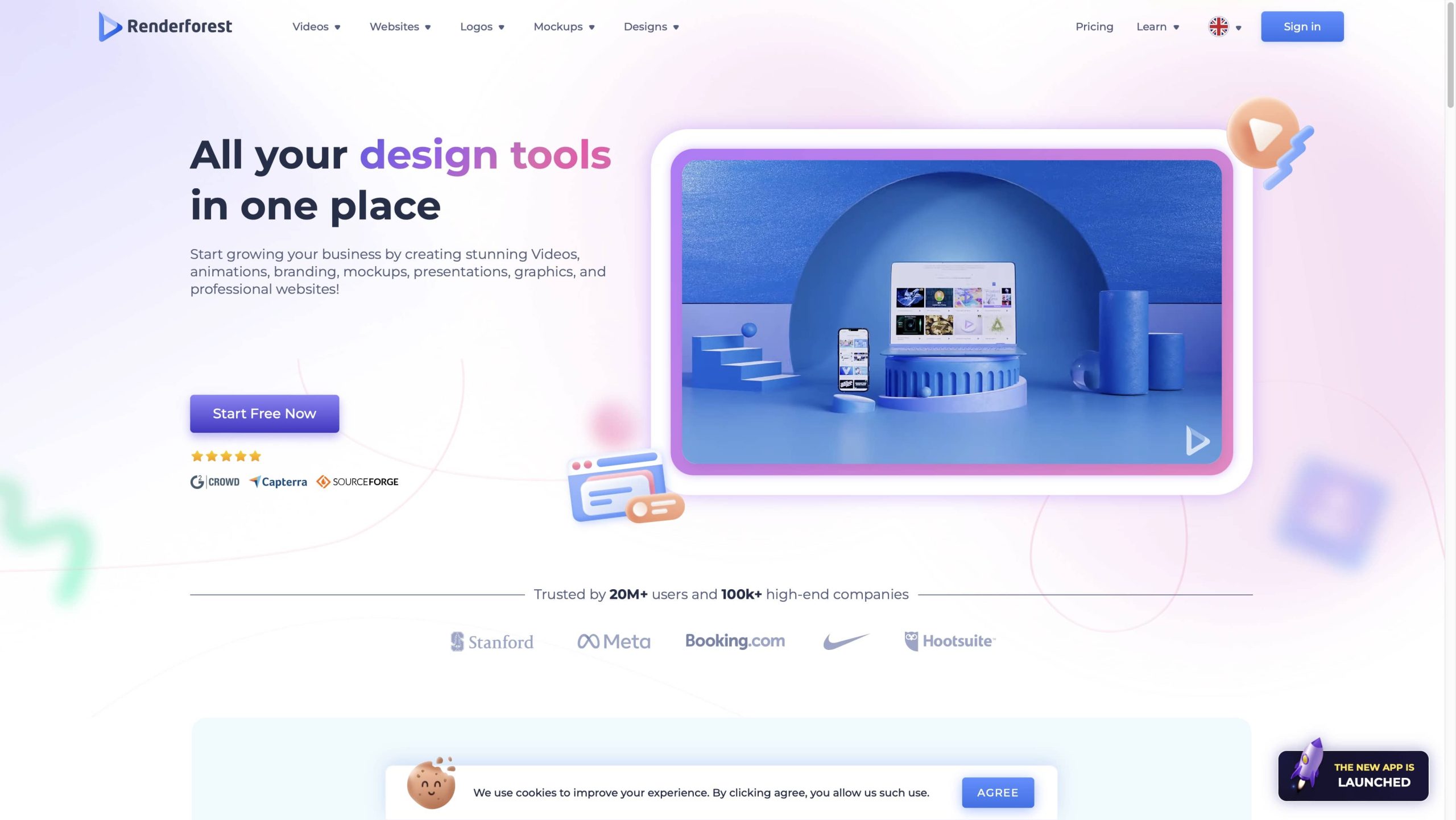 มาที่เว็บ Renderforest กด “Start Free Now” เพื่อเริ่มสร้าง Animation กัน