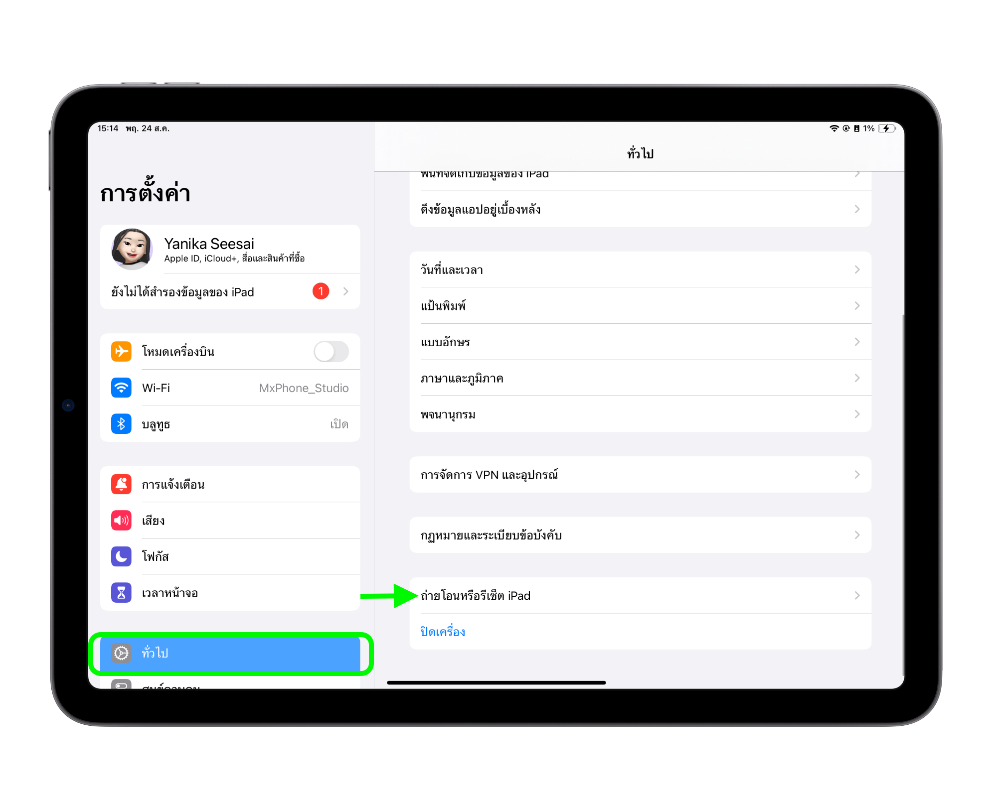 เข้าไปที่แอปการตั้งค่า > ทั่วไป > ถ่ายโอนหรือรีเซ็ต iPad/iPhone