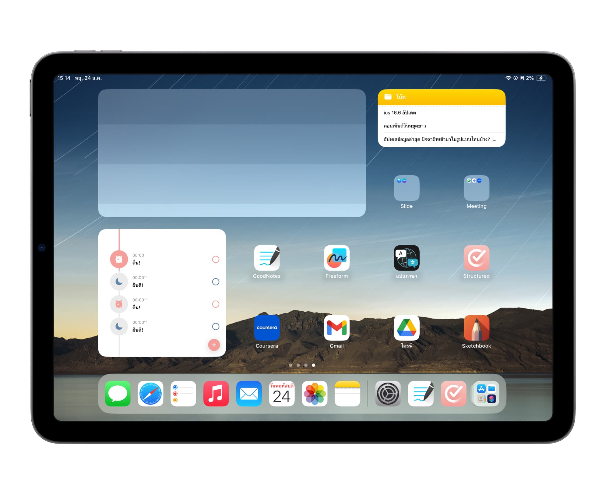 - หน้าจอหลักบน iPhone หรือ iPad จะดูเหมือนการตั้งค่าครั้งแรก โดย iPhone จะมีวิดเจ็ต Smart Stack อยู่บนหน้าจอเป็นค่าเริ่มต้นด้วย