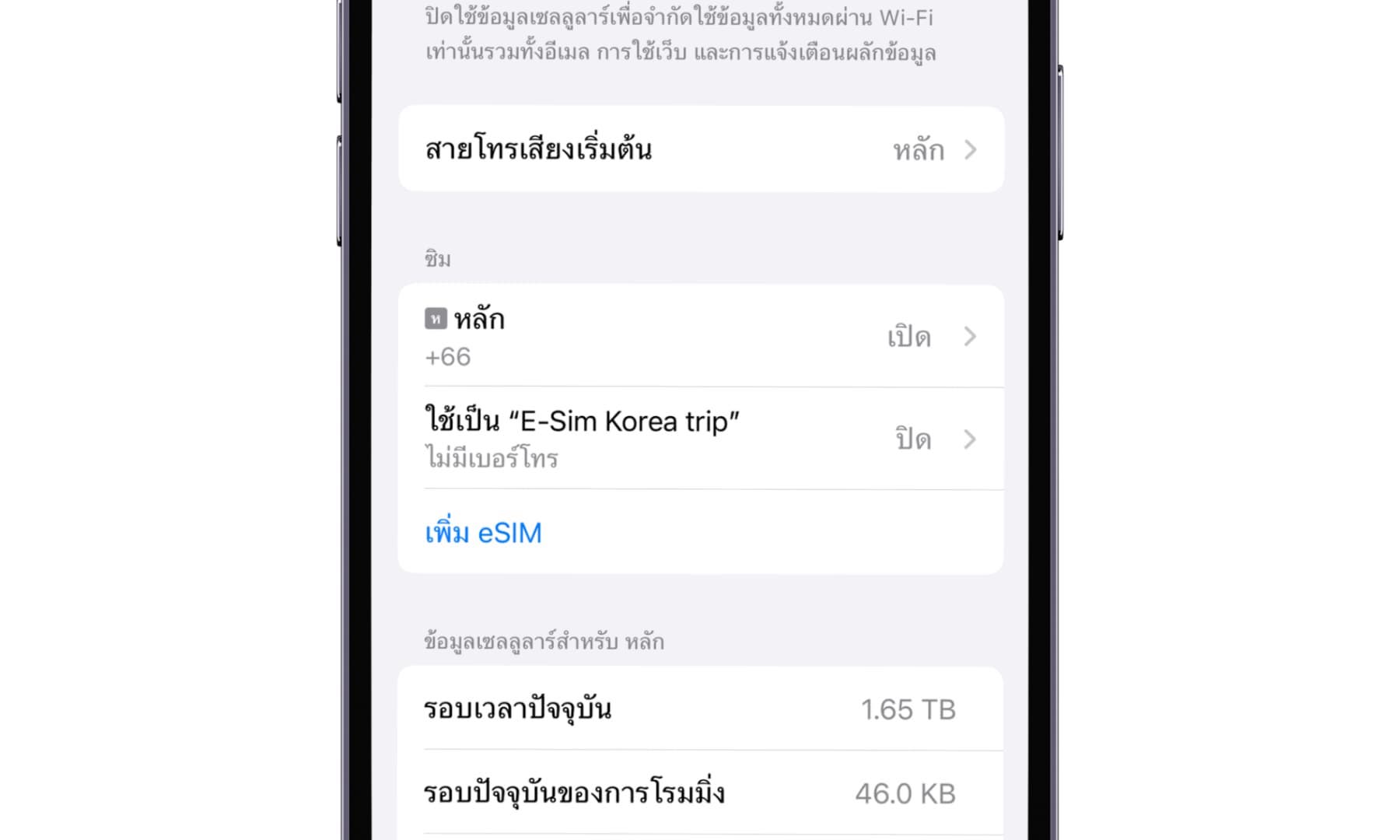 เมนูนี้จะใช้ลบ eSIM ที่เคยอยู่ในเครื่อง หากใครยกเลิก eSIM หรือทำการปิดเบอร์นั้นไปแล้ว แล้ว eSIM ยังค้างอยู่ในเครื่องก็สามารถกดลบ eSIM เพื่อลบข้อมูล eSIM ทั้งหมดออกจากเครื่องได้เลย