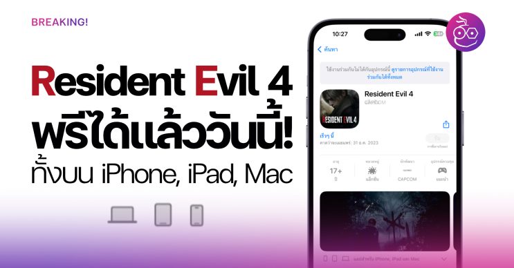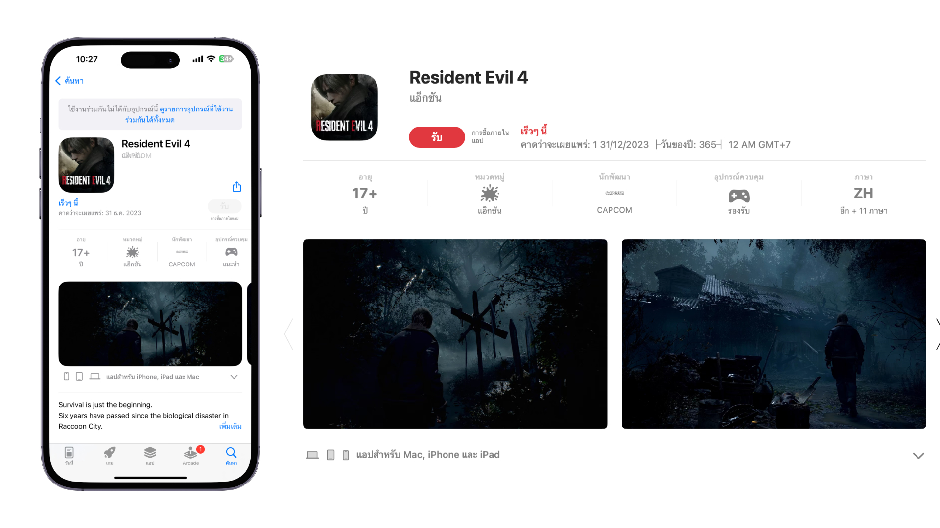 ส่วนเกม Resident Evil Village มีรายงานว่าจะเปิดให้ดาวน์โหลดบน iPhone ในวันที่ 30 ต.ค. 2023 นี้ค่ะ