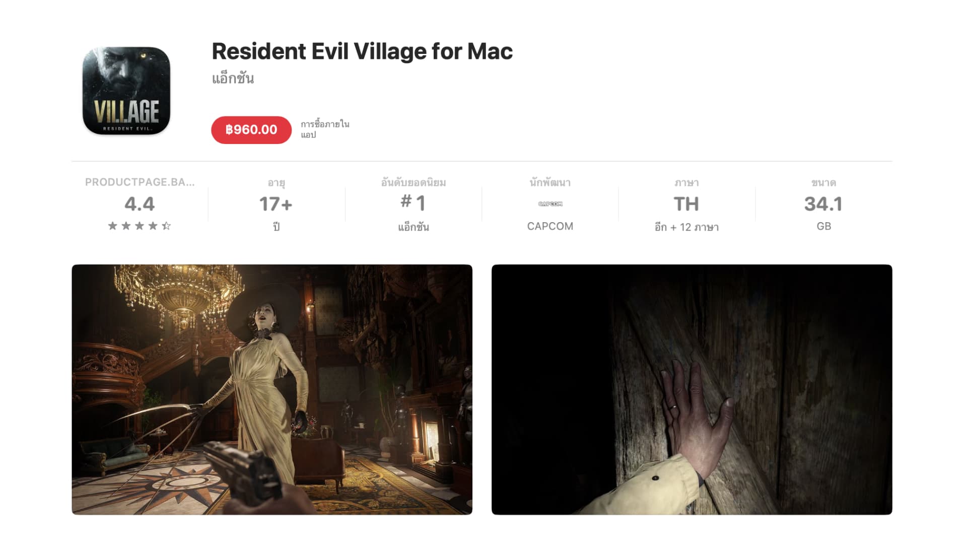 ลิงก์ดาวน์โหลด : https://apps.apple.com/th/app/resident-evil-village/id1640627334?l=th&mt=12