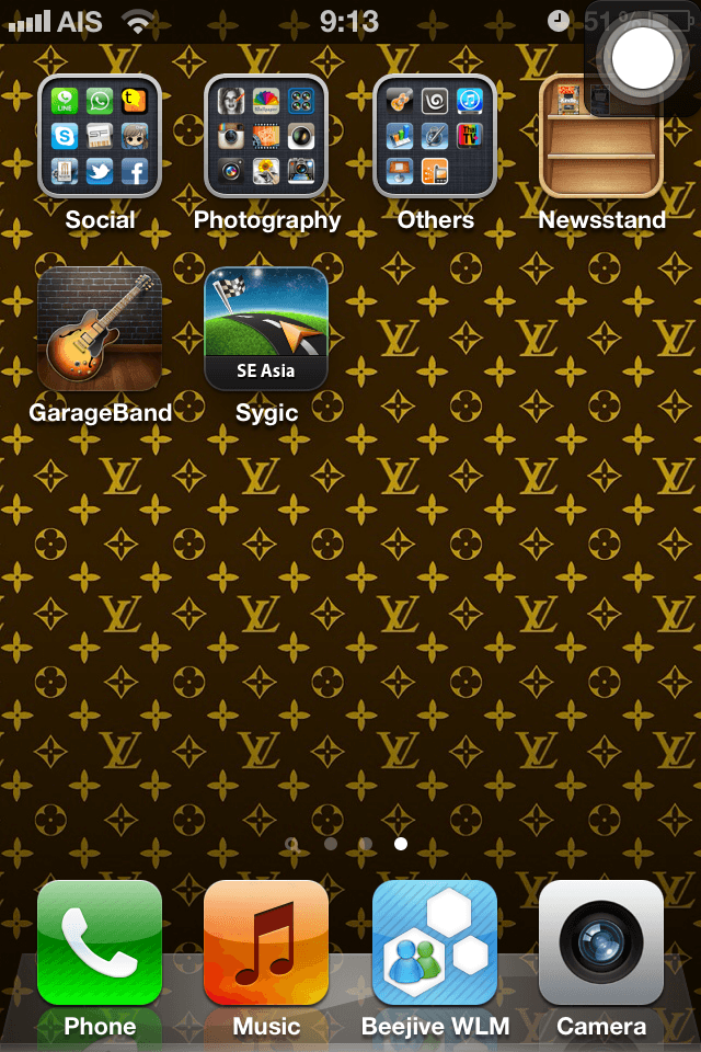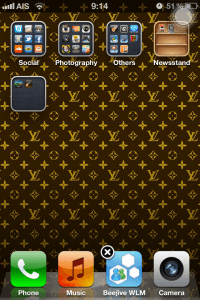 1. เตรียม Apps อะไรก็ได้ไว้ 2 Apps ในหน้าเดียวกัน พร้อมกับ App Newstand ดูตามรูปได้เลย