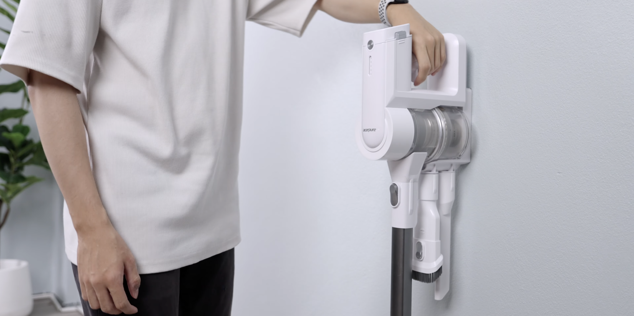 มีอุปกรณ์สำหรับการติดตั้งกับผนังเพื่อใช้ในการจัดเก็บเครื่องดูดฝุ่นตัวนี้ได้อย่างมีระเบียบ ไม่เปลืองพื้นที่ในห้องของเรา