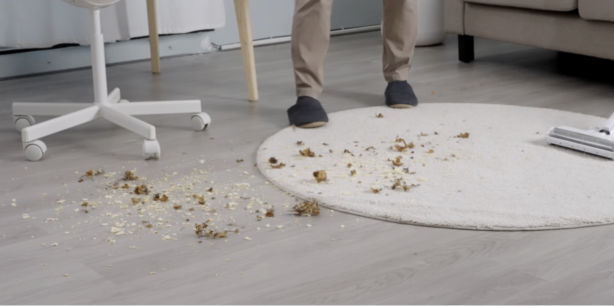 โดยได้นำของด้านบนทั้งหมดนี้มาโปรยลงบนพื้นของห้อง และ พรม เพื่อลองทดสอบความสามารถของเครื่องดูดฝุ่นไร้สายตัวนี้