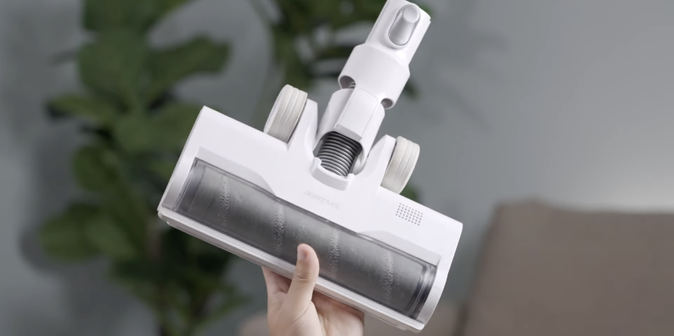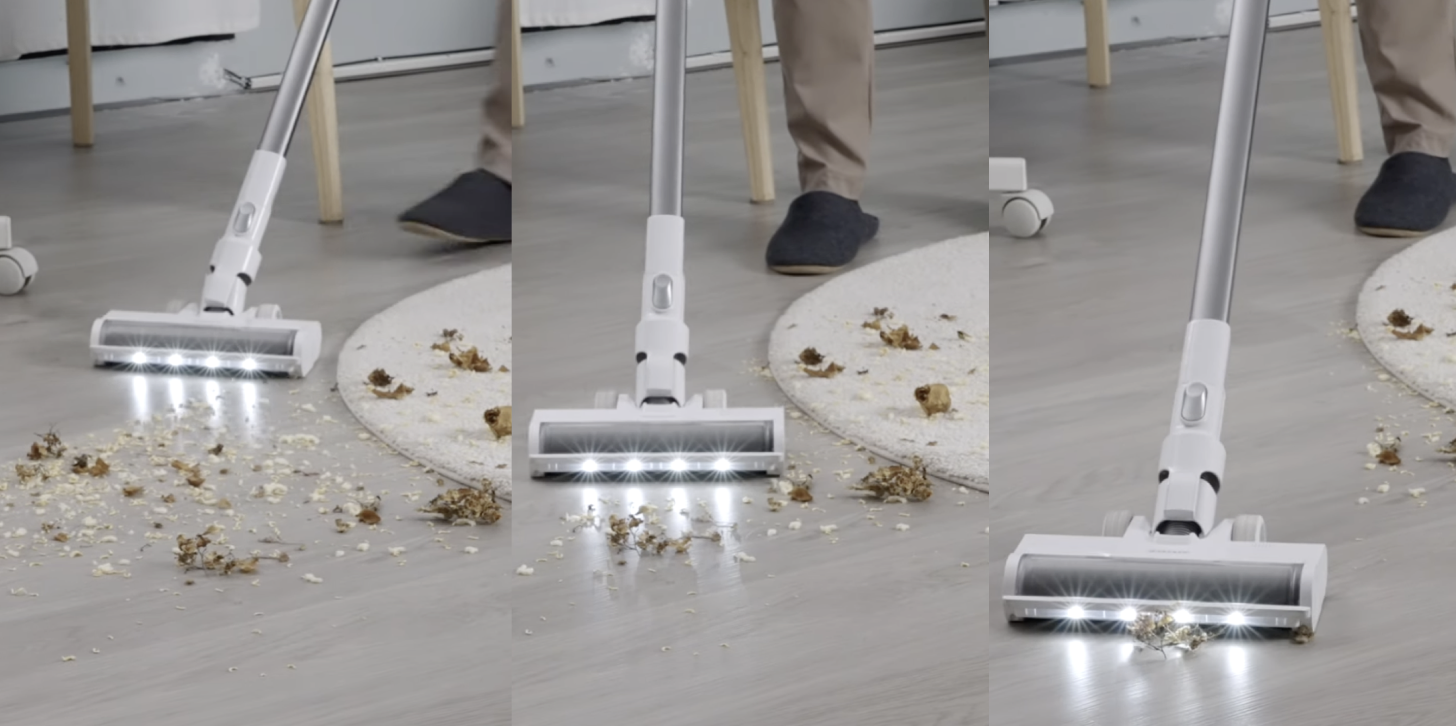 - หัวแปรงที่สองเป็นหัวแปรงหลักแบบลูกกลิ้ง เอาไว้ถูพื้น ดูดฝุ่น ไฮไลท์ของหัวแปรงหลักนั่นก็คือมีไฟ LED ด้านหน้าในการส่อง ช่วยให้เรามองเห็นฝุ่นชิ้นเล็ก ๆ หรือพื้นที่ที่สกปรกได้ดีขึ้น