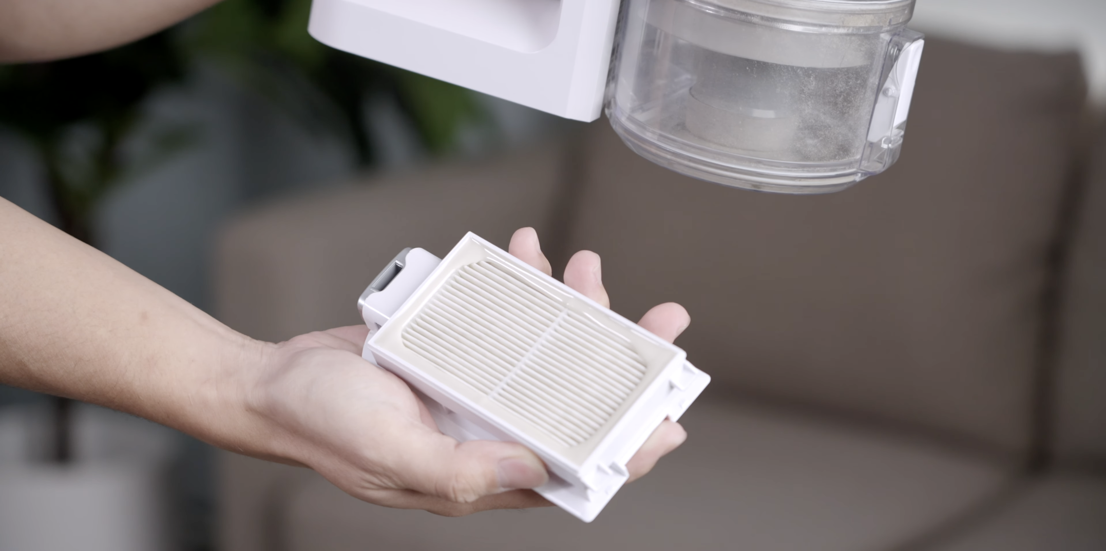 ด้านล่างเป็นที่เก็บของ HEPA Filter ที่สามารถดักเก็บฝุ่นได้มากถึง 99.9% ซึ่งได้รับรองจากศูนย์วิจัยตรวจจุลชีววิทยา ณ มณฑลกวางตุ้ง (Guangdong detection center of microbiology) ที่ได้รับมาตรฐานด้วย