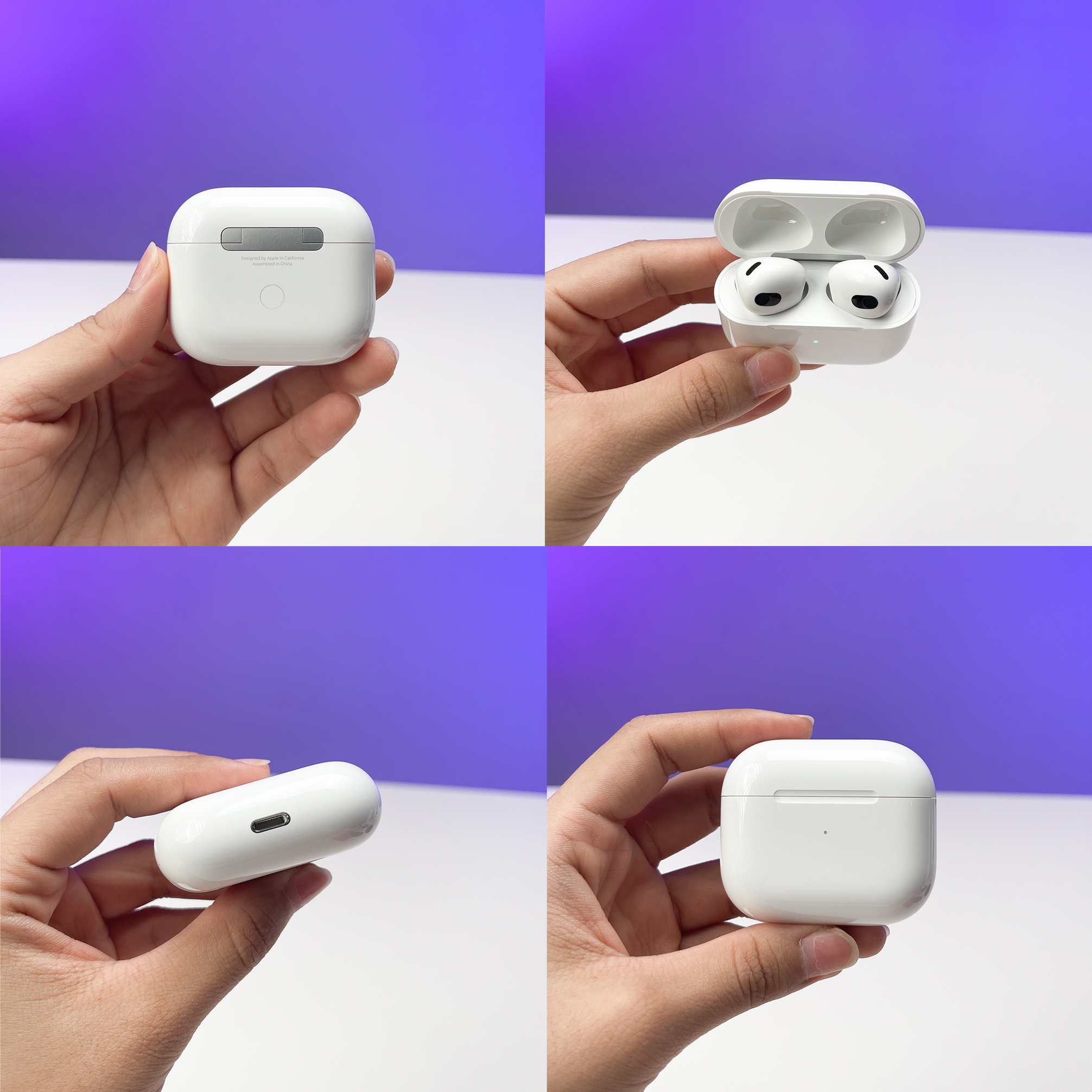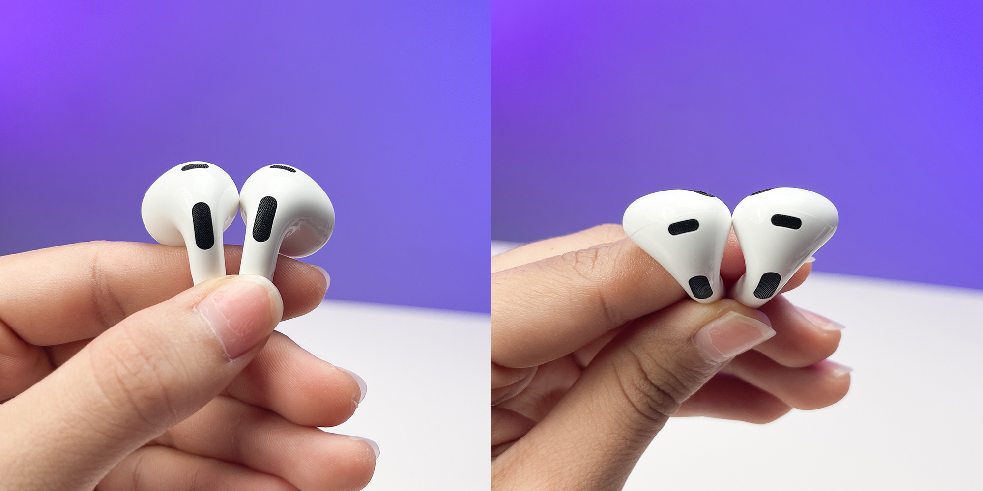 - หูฟัง AirPods รุ่นที่ 3 เป็นหูฟัง Ear Buds ไม่ตัดเสียงรบกวนเพราะไม่มีจุกยางแบบ AirPods Pro แต่จะมีลักษณะคล้ายกับตัว AirPods Pro และตัวก้านหูฟังจะสั้นกว่าเดิม แต่เดิม AirPods รุ่นที่ 2 จะควบคุมผ่านการสัมผัสที่ก้านหูฟัง ตอนนี้ AirPods รุ่นที่ 3 จะใช้การบีบที่ก้านหูฟังเพื่อสั่งการแทน