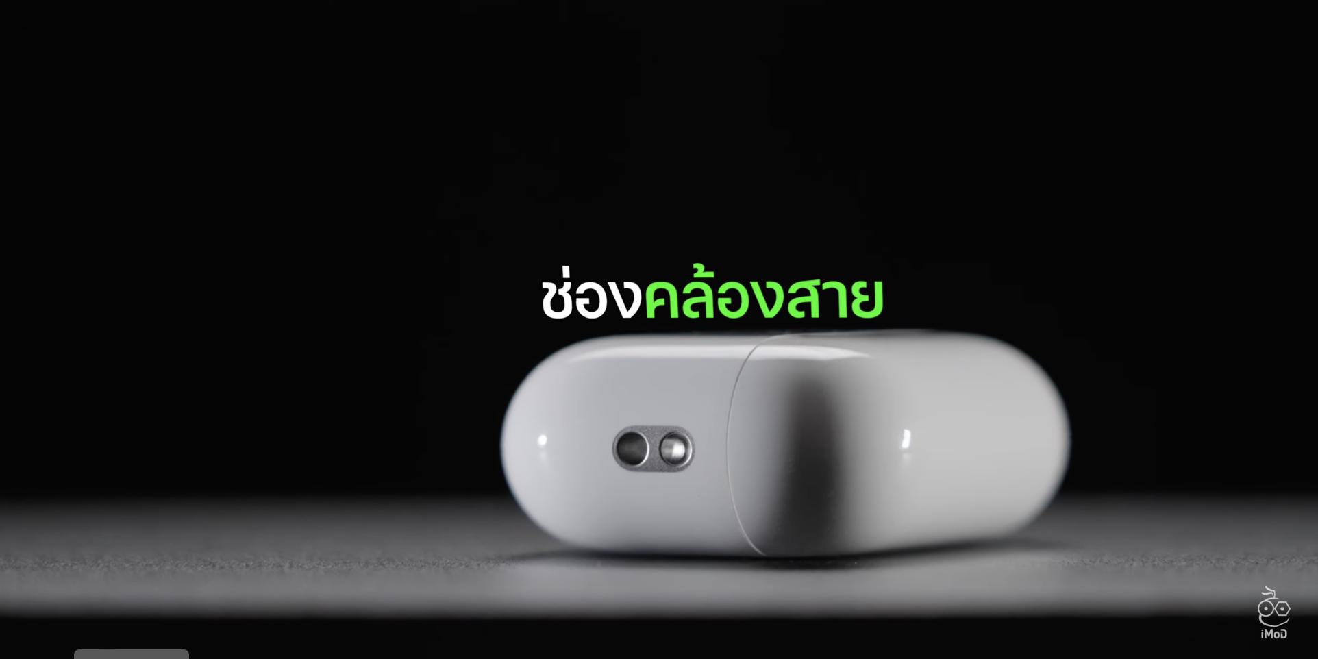 ดีไซน์ด้านล่างเคสของ AirPods Pro รุ่นที่ 2 มีการเพิ่มลำโพงเข้ามา เพื่อใช้งานการส่งเสียงบอกตำแหน่งได้ ตอบโจทย์การใช้งาน กรณีที่หาตัวเคสไม่เจอ