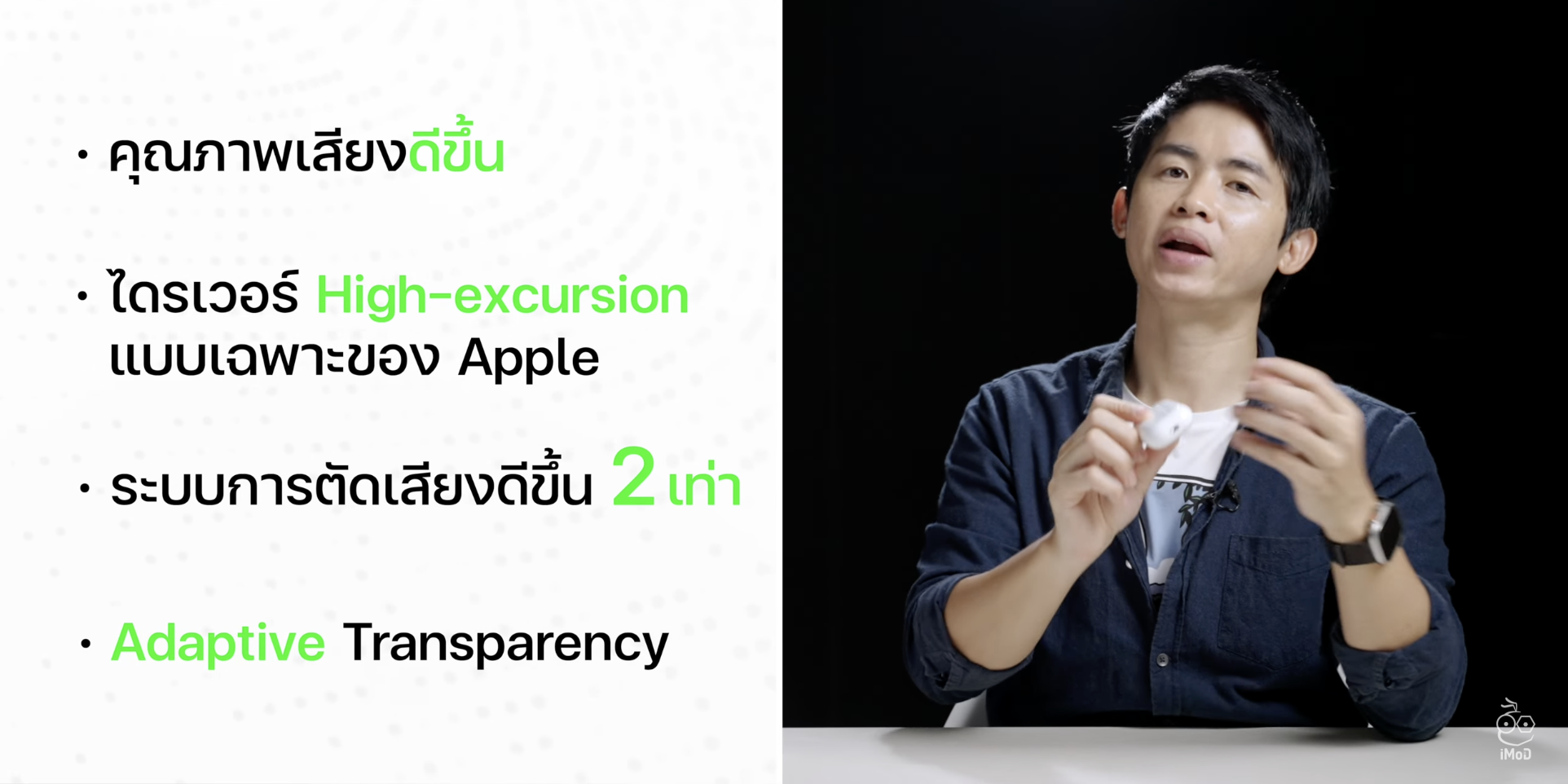 - ชิป H2 มีคุณภาพเสียงที่ดีขึ้น รวมกับ Driver High-excusion ใหม่ออกแบบเฉพาะของ Apple มากับระบบตัดเสียงที่ดีขึ้น 2 เท่า และ Adaptive Transparency