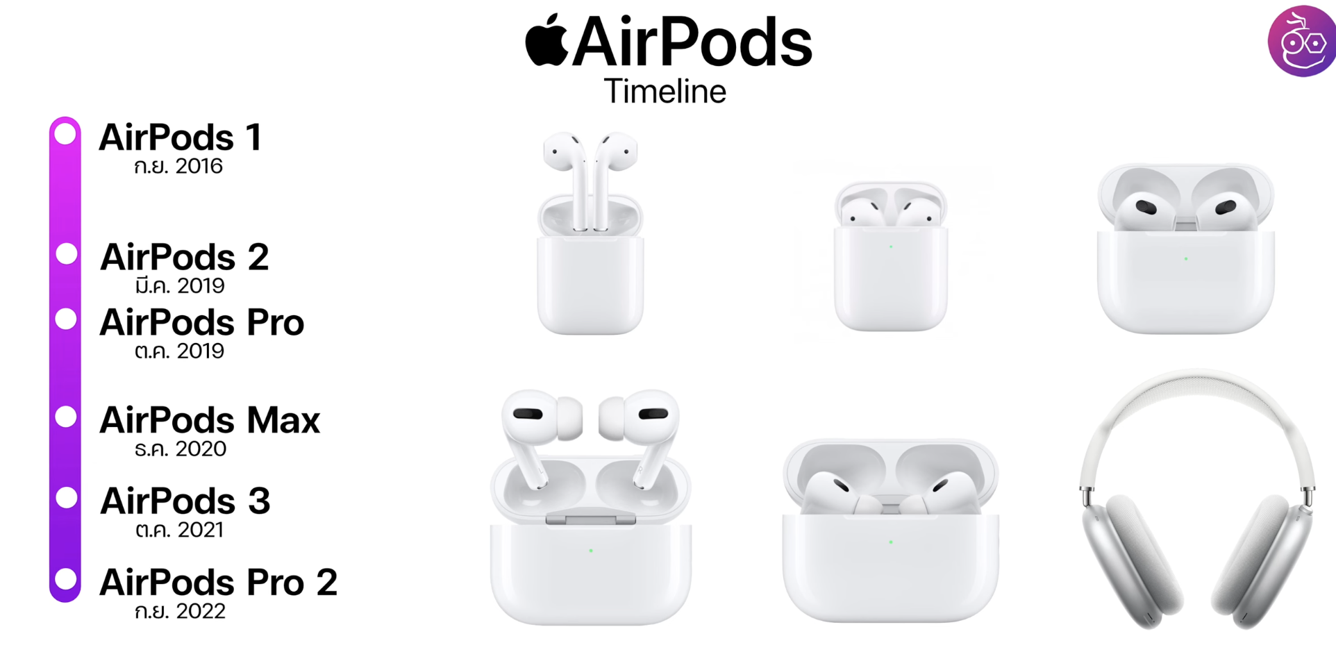 ปัจจุบัน AirPods มีทั้งหมด 6 รุ่นได้แก่