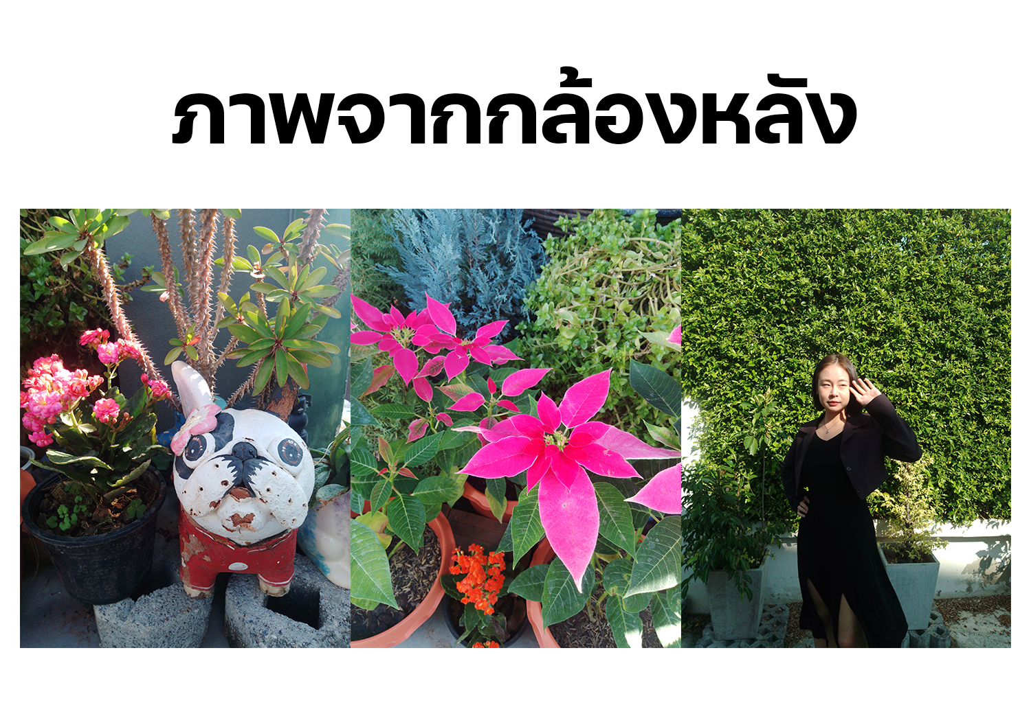 - กล้องหลัง 3 ตัว ความละเอียดสูงสุด 16MP AF + 2MP FF + 2MP FF พร้อมแฟลช LED ทดสอบถ่ายภาพจากกล้องหลังในที่แสงเยอะ เวลาประมาณ 10 โมง ภาพที่ได้ทำได้ดี สีสันสดใส ภาพคมชัด หรือจะถ่ายคนภาพคนที่อยู่ตรงกลาง สัดส่วนไม่เพี้ยน แต่จะเวลากดโฟกัสภาพก็จะมีความหน่วง นิดหน่อย