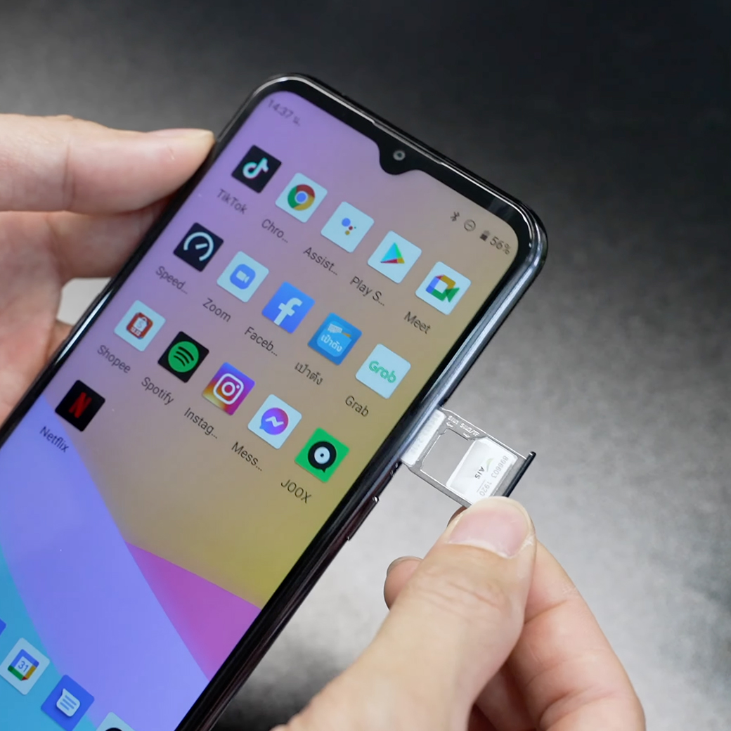 รองรับการใส่ซิมคู่ สามารถใส่ซิมการ์ดได้ 2 ซิม หรือจะใส่การ์ด microSD ความจุสูงสุด 128GB แทนซิมการ์ด 2 ก็ได้