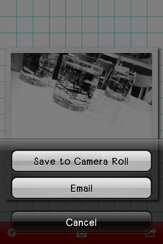 เมื่อแต่งเสร็จแล้วก็ทำการเซฟได้เลย มีให้เลือก เซฟลง Camera Roll กับ Email ค่ะ