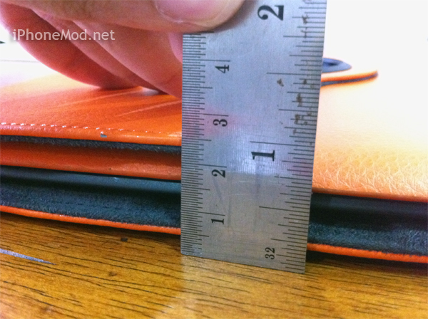 ความหนาของเคส(รวมฝา) ณ ส่วนที่หนาที่สุดรวมฝาบริเวณที่หนาที่สุด(เพราะเป็นขาตั้ง)เมื่อได้ติดตั้งเคสแล้วจะมีความหนาอยู่ที่ 2 เซนฯ ครึ่ง