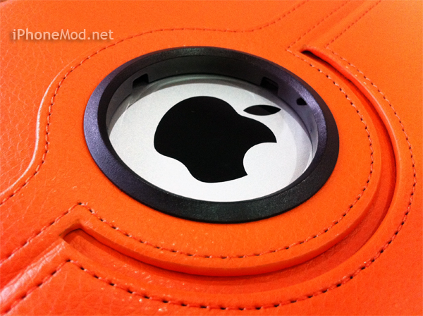 หากพลิกเครื่องมาดูด้านหลังจะเห็นแบบนี้ โชว์ตรา Apple หราเลย(แบบที่หลายคนชอบ)อีกอย่างมันเป็นช่องตัวล็อคหมุ่น ทำให้ได้ช่องพอดิบพอดีเลย(หวังว่าคงไม่มีใครกลัวตรา Apple เป็นรอยนะ = =”)เพราะตัวโลโก้จะแทบไม่มีโอกาสได้สัมผัสกับพื้นเลย
