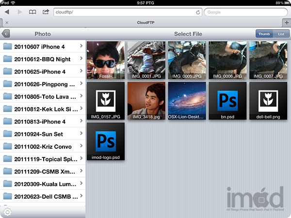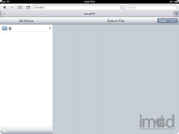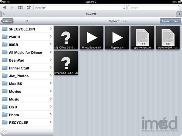 ขั้นต่อไปก็เพียงเปิด Safari ขึ้นมาแล้วพิมพ์ไปที่ช่อง address bar ว่า ftp หรือ cloudftp เท่านี้ตัว Safari ก็จะแสดงรายการต่างๆ ในอุปกรณ์ USB ที่เชื่อมต่อเข้าไปแล้ว