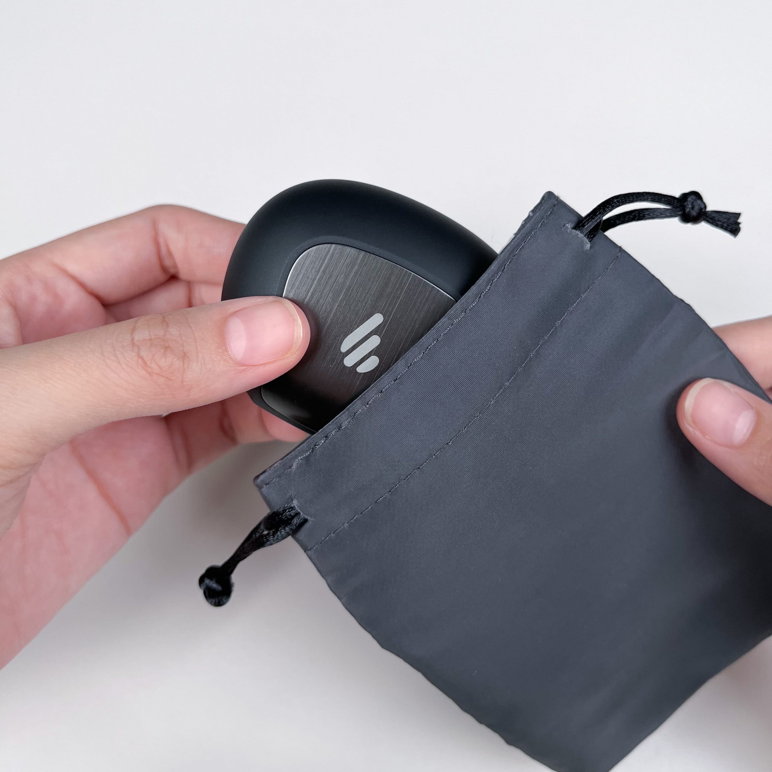 - หูฟังและเคสชาร์จพกพาง่าย เพราะมีน้ำหนักเบา ขนาดกระทัดรัด แถมยังมีถุงเก็บหูฟังมาให้ด้วย
