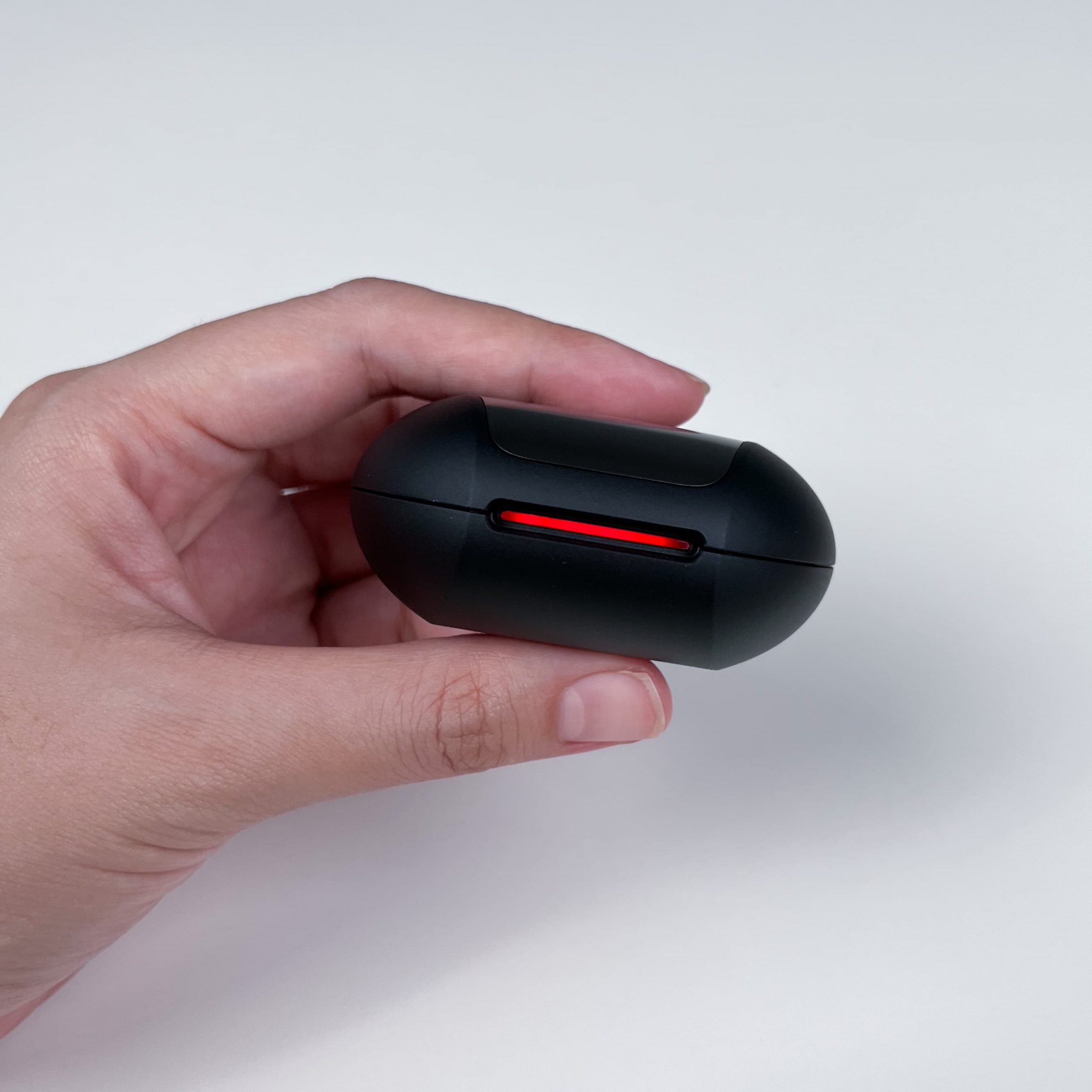 หูฟังมาในกล่องชาร์จขนาดกะทัดรัด ตัวกล่องเป็นพลาสติกแบบด้านสีดำ เกิดรอยขีดข่วนได้ยากกว่าวัสดุแบบอื่น ๆ ด้วยความที่เป็นวัสดุแบบด้าน ทำให้ตอนที่หยิบจับจะไม่มีรอยนิ้วมือติดที่กล่อง ทำให้กล่องชาร์จดูใหม่อยู่ตลอดเวลา