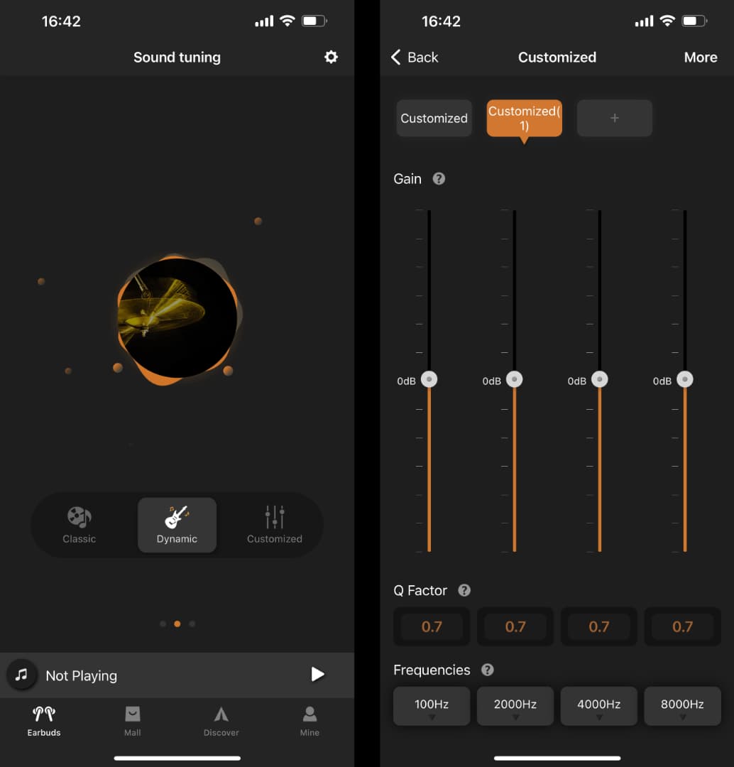 เรายังสามารถปรับแต่งโทนเสียง ปรับเลือกโทนเสียงได้ 2 แบบ ได้แก่ Dynamic เหมาะกับการฟังเพลงที่กระหึ่ม เน้นเสียงเบสมันส์ ๆ และแบบ Classic เหมาะสำหรับการฟังสบาย ๆ หากไม่ชอบเสียงเบสหนักก็เลือกเป็นโทนเสียงนี้ได้ นอกจานี้ยังสามารถปรับแต่ง EQ ตามชอบได้เลย