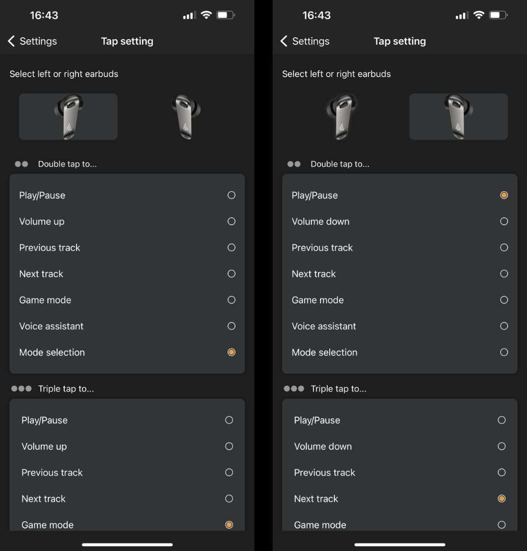 ในแอปยังสามารถปรับแต่งการแตะสัมผัสเพื่อควบคุมหูฟัง และปรับแต่งความไวในการแตะสัมผัส (Tap sensitivity) ของตัวหูฟังได้ด้วย บางคนอาจจะถนัดกับการแตะไว ๆ บางคนอาจจะถนัดกับการแตะช้า ๆ ก็ให้เลือกปรับตามความชอบได้เลยค่ะ