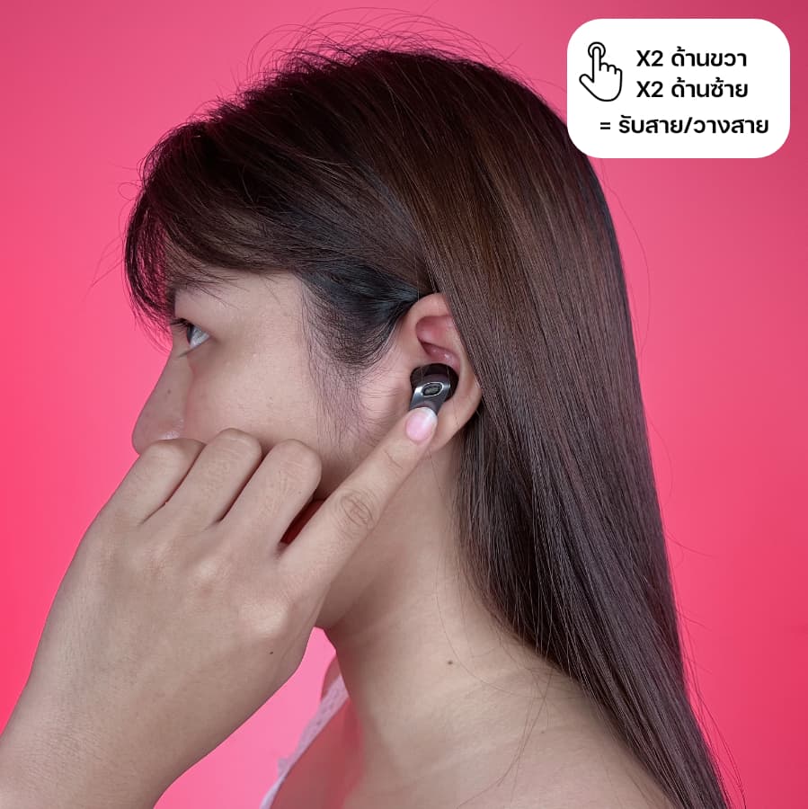 - เมื่อมีสายเรียกเข้า แตะ 2 ครั้งที่หูฟังด้านซ้ายหรือขวา เพื่อรับสายหรือวางสาย