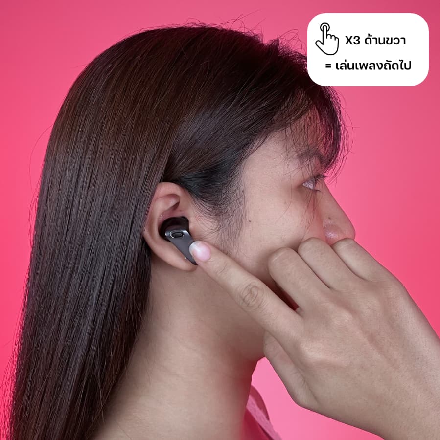 - แตะ 3 ครั้งที่หูฟังด้านขวาสามครั้ง เพื่อเล่นเพลงถัดไป