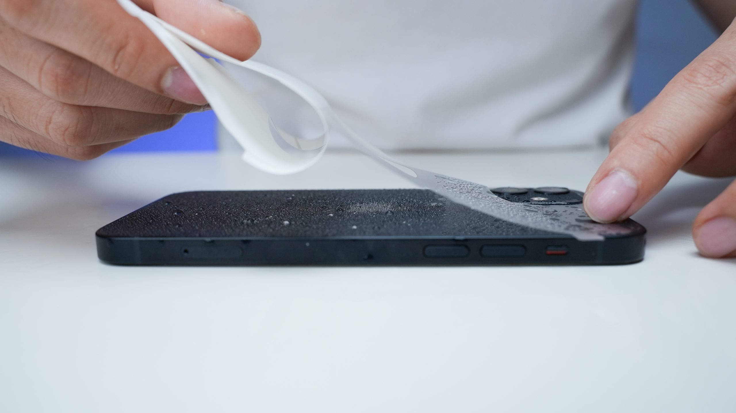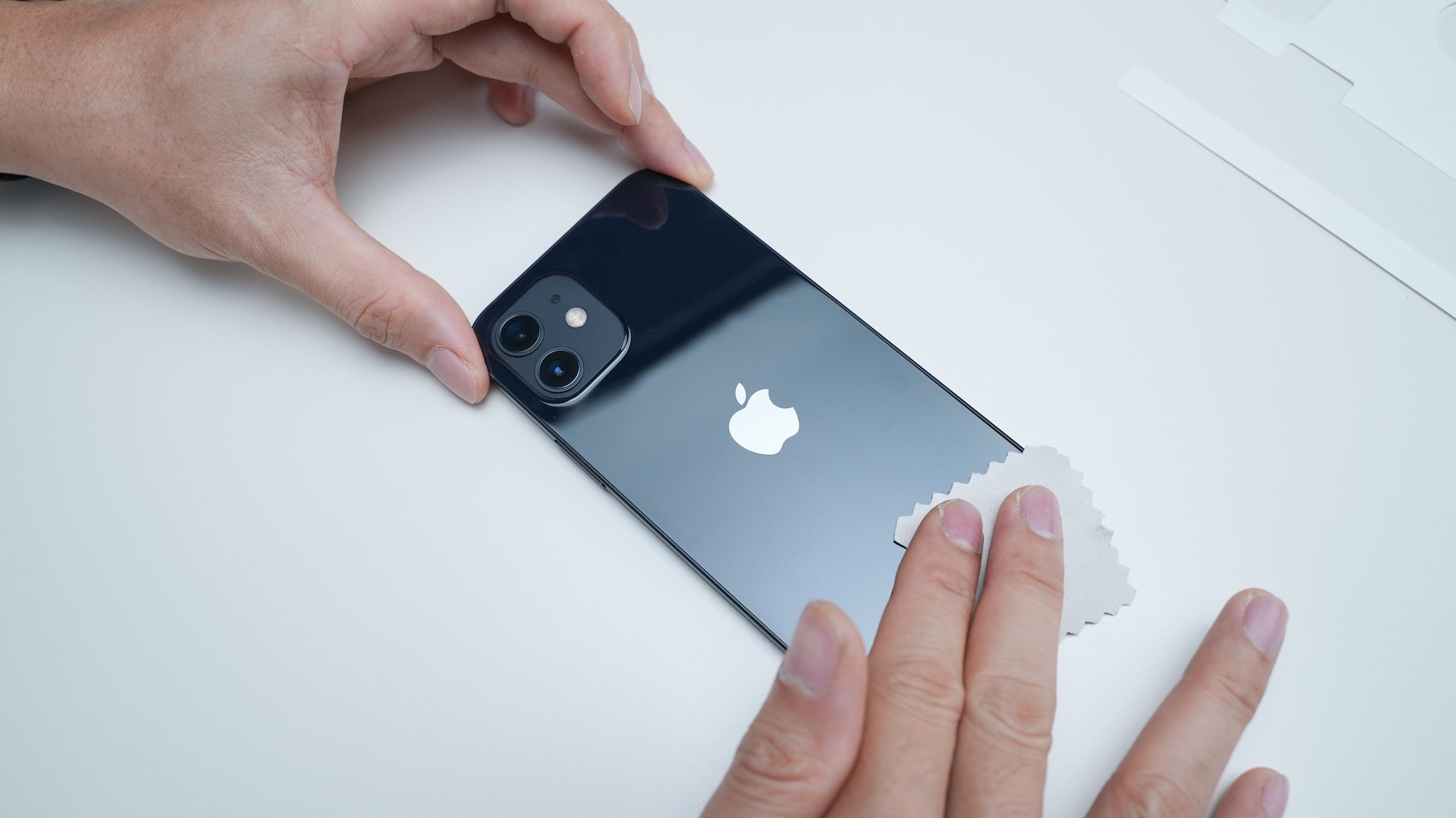 วิธีการติดฟิล์มนั้นสามารถทำได้ง่าย ๆ เลย โดยขั้นตอนแรกให้ทำความสะอาดด้านหลังและรอบเครื่อง iPhone ด้วย Cleaning Wipe จากนั้นเช็ดด้วยผ้าไมโครไฟเบอร์ จากนั้นเก็บฝุ่นด้วยสติ๊กเกอร์