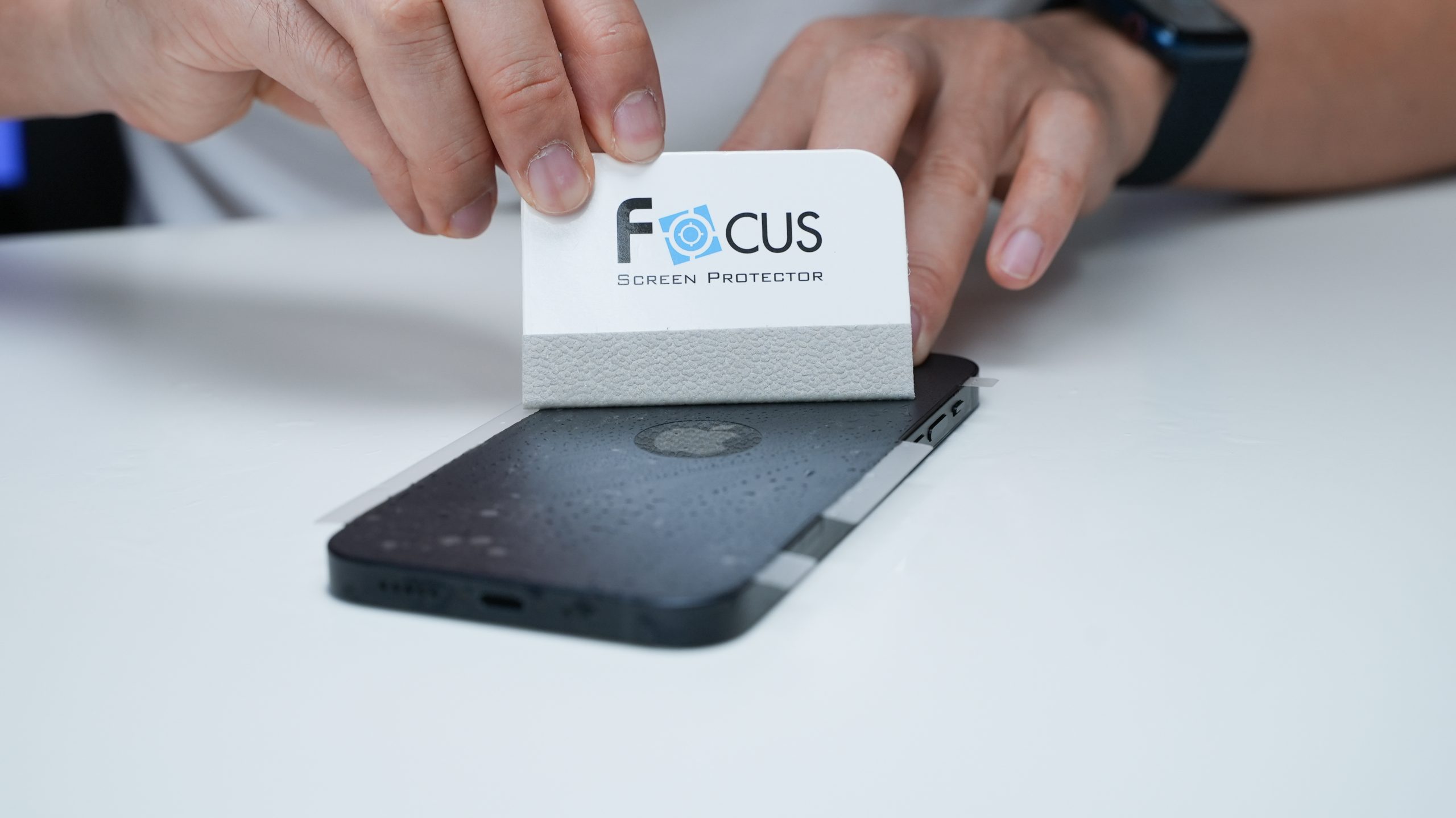 เริ่มติดหลังเครื่องโดยการจัดฟิล์มให้ตรงกับตำแหน่งที่ต้องการ จากนั้นลอกฟิล์ม Focus Deco Shield จากแผ่นอะคริลิคครึ่งแผ่น และนำฟิล์มมาติดบนหลังตัวเครื่องโดยเริ่มจากบริเวณตัวกล้องก่อน จากนั้นค่อย ๆ ไล่ฟิล์มลงถึงขอบเครื่องพร้อมกับดึงแผ่นอะคริลิคไปด้วย