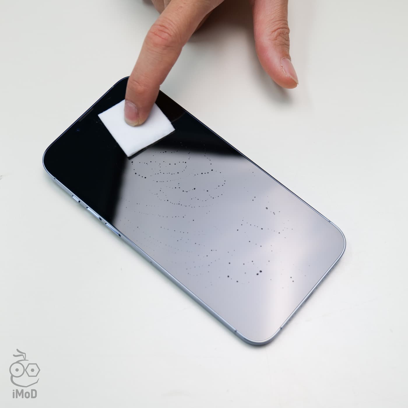 ขั้นตอนแรกให้ทำความสะอาดหน้าจอ iPhone ของเราให้สะอาด โดยใช้ Cleaning Wipe เช็ดคราบสกปรกบนหน้าจอออกให้หมด จากนั้นเช็ดด้วยผ้าไมโครไฟเบอร์ให้สะอาด