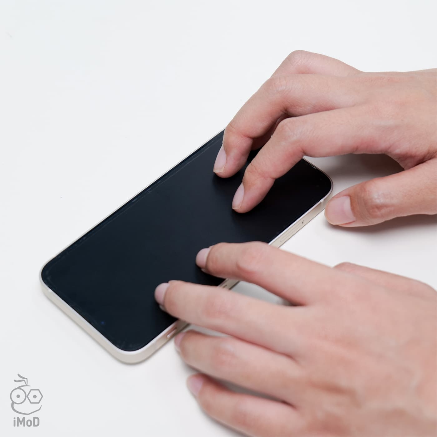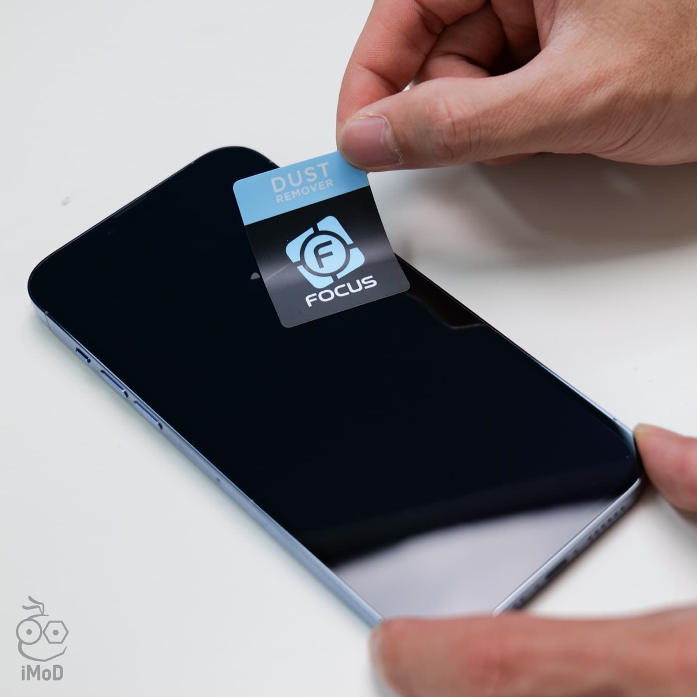 หากพบฟองอากาศหรือเศษฝุ่นหลงเหลืออยู่ให้ค่อย ๆ แกะฟิล์มจากมุมหน้าจอด้านที่ใกล้ที่สุด และใช้สติ๊กเกอร์เก็บฝุ่นออกให้หมด จากนั้นค่อย ๆ ใช้นิ้วไล่อากาศออกไปด้านข้างเพื่อให้ฟิล์มเรียบติดไปกับหน้าจอ แล้วใช้ผ้าไมโครไฟเบอร์เช็ดหน้าจอให้สะอาดอีกครั้ง เท่านี้ก็เสร็จสิ้นขั้นตอนการติดฟิล์ม Focus Hydroplus แล้ว