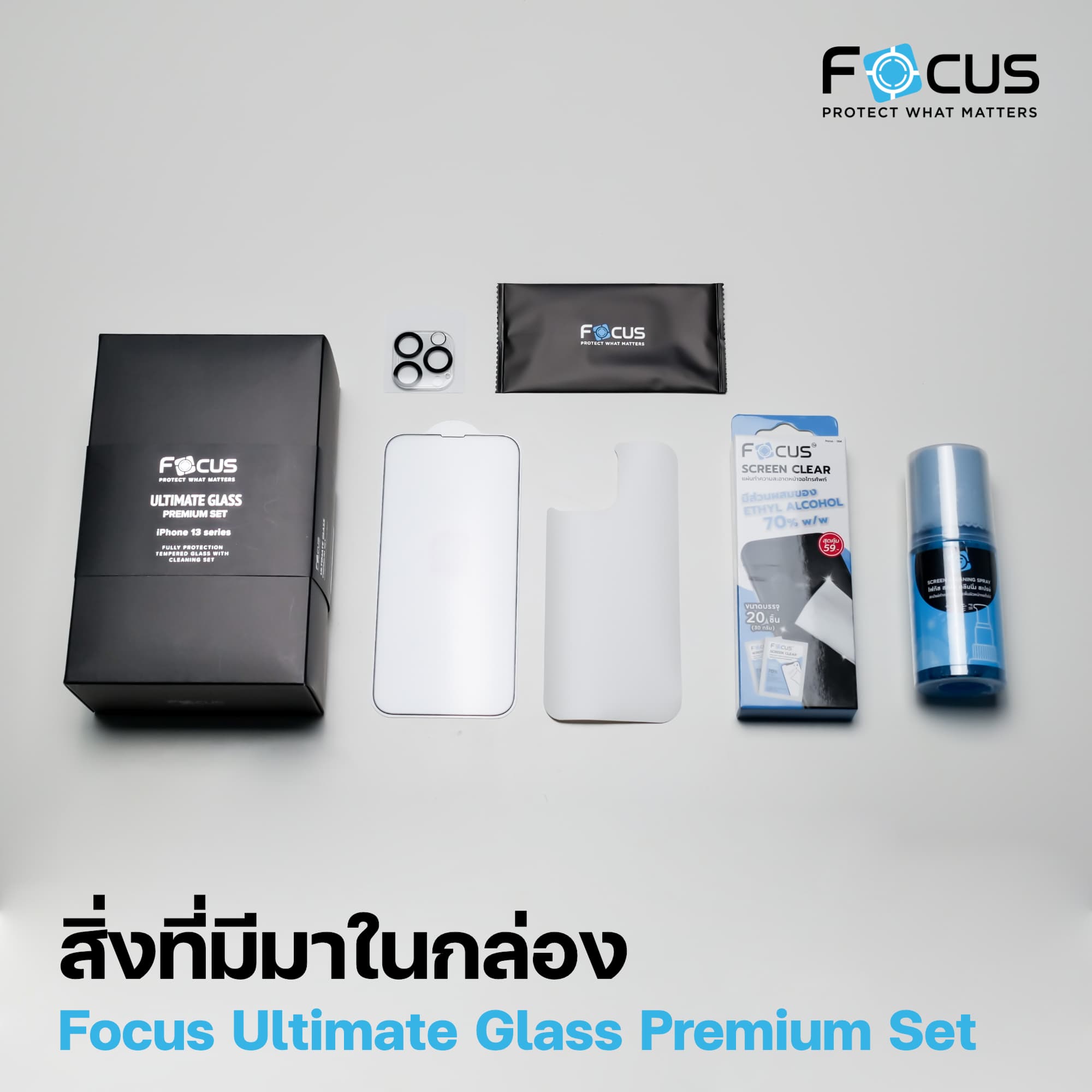 สิ่งที่มีมาในกล่อง Focus Ultimate Glass Premium Set ประกอบไปด้วย
