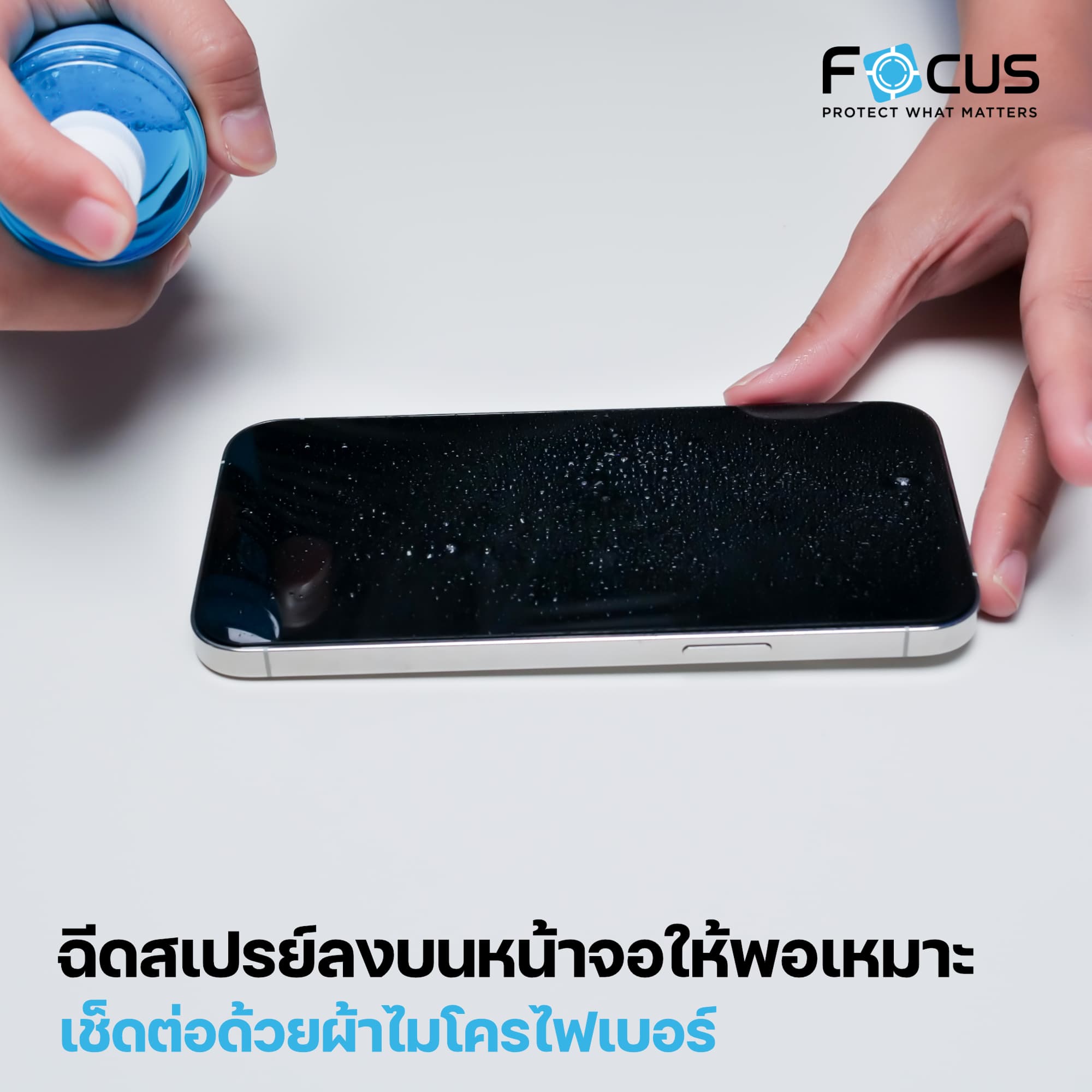 ในกล่องยังมี Focus Screen Cleaning Spray เป็นสเปรย์ทำความสะอาดพื้นผิวหน้าจอทั่วไป สามารถใช้กับหน้าจอสมาร์ตโฟน หน้าจอคอมพิวเตอร์และแล็ปท็อป หน้าจอ TV กล้องถ่ายรูป และแว่นตาที่เราสวมใส่ได้ด้วย