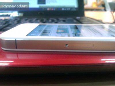 เราลองมาดูมุมแปลก ๆ กันบ้างนะครับ (แปลกมาก) ตรงนี้เป็นส่วนของความหนาของตัวเครื่องครับ ดูพอดีกระทัดรัด สามารถใส่กระเป๋ากางเกงได้สบาย ๆ หากใครไม่เคยมีประสบการณ์สัมผัสกับ iPhone4 มาก่อน อยากให้ลองไปหยิบไปจับได้ที่ศูนย์ครับ แล้วคุณจะรัก iPhone4 ขึ้นมากทีเดียว (โดยเฉพาะสีขาว เพราะเด่นมากกกก)