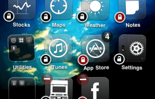 สำหรับการใช้งานก็สุดแสนจะง่ายดาย วิธีการคือจิ้มค้างที่ไอคอนใดๆก็ได้ เหมือนตอนที่เราจะลบแอปนั้นออก สังเกตว่าไอคอนนั้นจะมีรูปกุญแจเพิ่มขึ้นมา