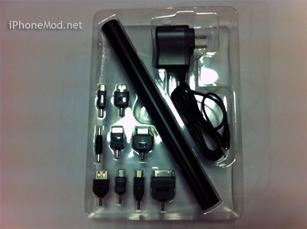 ตัว Power Tube นั้นมาพร้อมกับหัวชาร์จอุปกรณ์แบบต่าง ๆ ถึง 9 หัวด้วยกัน ซึ่งไม่เฉพาะ iPhone เท่านั้นยังมีหัวเฉพาะสำหรับรุ่นอื่น ๆ อีกด้วย เอาล่ะครับเมื่อกี้ผมค้างเรื่องการถ่ายเทประจุพลังงานเอาไว้ กล่าวก็คือคนส่วนใหญ่ไม่รู้เรื่องพลังงานที่แบตฯ สำรองถ่ายโอนประจุได้และคนขายเขาไม่ค่อยจะบอกกันครับหรือก็คือ ปกติแล้ว Power Bank หรือที่คนทั่วไปชอบเรียกกัน “External battery” สามารถชาร์จแบตฯ ของอุปกรณ์ได้เต็มพอดีจะต้องใช้ Power Bank ที่มี mAh มากกว่าแบตฯ ของอุปกรณ์ที่จะชาร์จประมาณ 1.7 เท่า