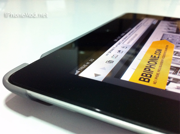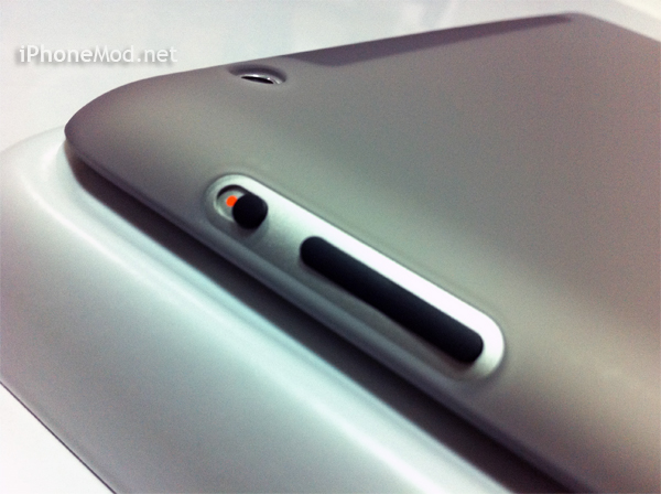 การเว้นช่องบริเวณด้านข้างสำหรับใช้ร่วมกับ Smart Cover อันนี้ออกแบบได้พอดี เรียบร้อยดี แต่ขอติตรงที่ว่า “ทำไมถึงไม่ยืดออกไปอีกนิด จะได้แกะซิม 3G ได้โดยไม่ต้องถอดเคส” ซึ่งดูแล้วกวนใจผมเอามาก ๆ เลย -*- อีกนิดเดียวแท้ ๆ จะเว้าจะแหว่งให้หน่อยก็ไม่ได้ จะได้เสียบเอาซิม 3G ออกมาสะดวก ๆ หน่อย >,<