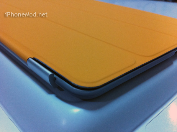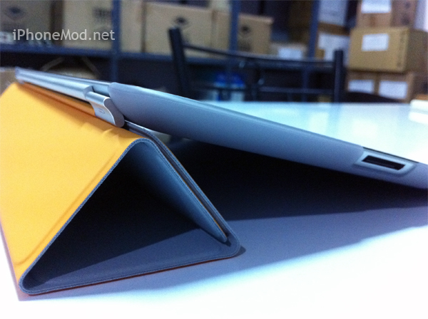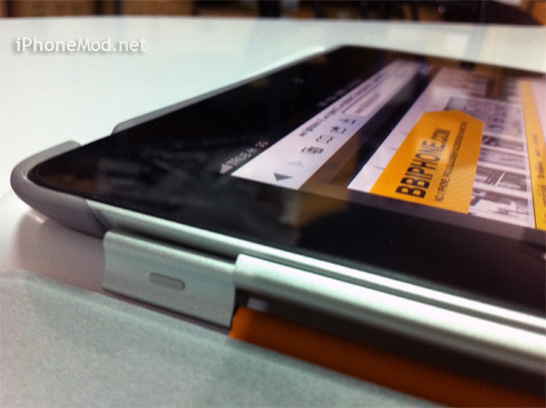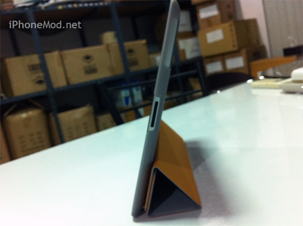 ตรงที่ติดแม่เหล็กของ Smart Cover นั้นเว้นออกมาด้านยาวได้พอดีแป๊ะ … นอกจากนี้ด้านหลังยังได้เว้นที่อีกไว้สำหรับเผื่อพับเวลาถือ ทำให้ตัว Smart Cover ไม่หลุด ซึ่งเก็บงานได้ดีเอาเสียมาก ๆ