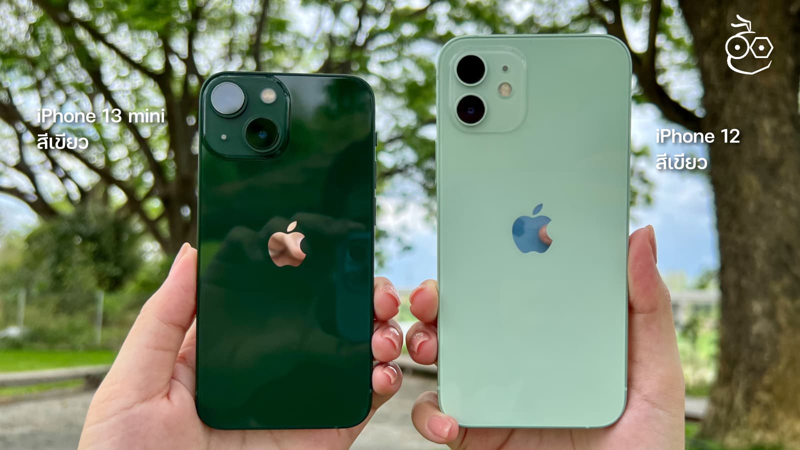 ระหว่างสีของ iPhone 13 mini สีเขียว และ iPhone 12 สีเขียว จะมีเฉดสีที่ต่างกันอย่างชัดเจน เพราะสีเขียวของ iPhone 12 จะออกไปทางสีเขียวอ่อนโทนพาสเทลมากกว่า