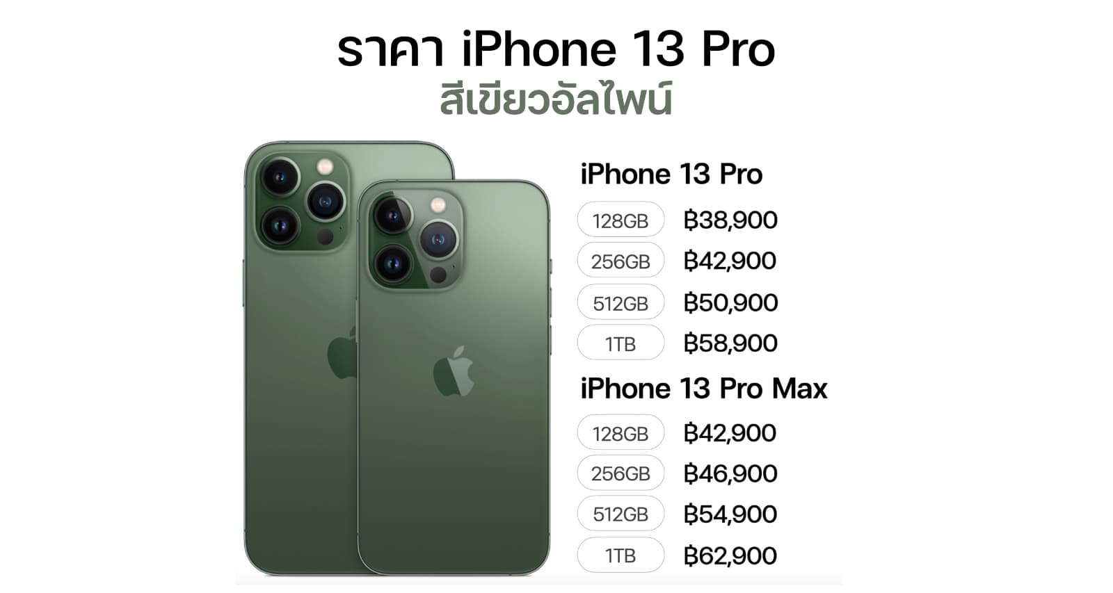 - iPhone 13 Pro, iPhone 13 Pro Max : สีเขียวอัลไพน์
