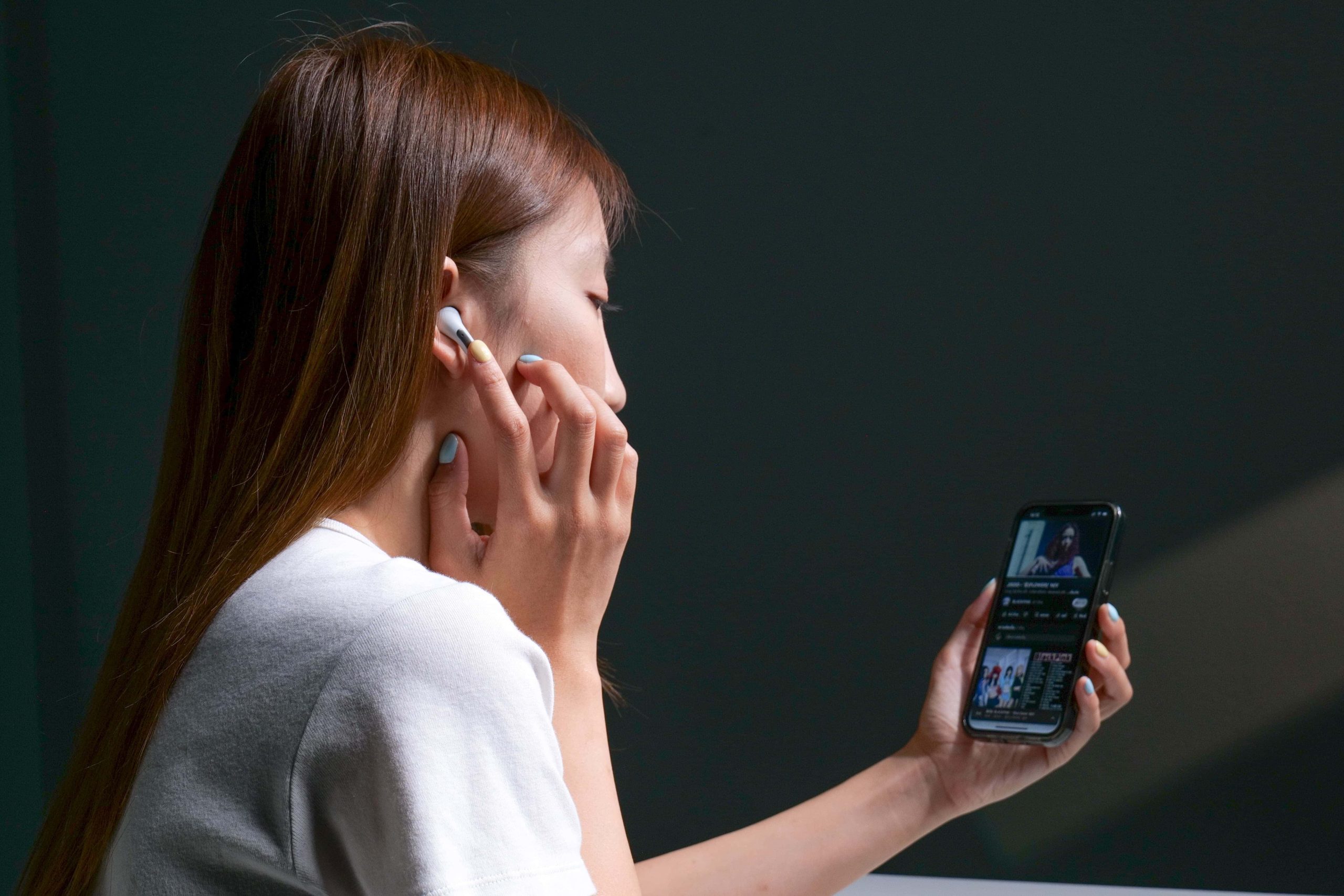 - แตะบริเวณแถบควบคุมด้านขวาหูฟังระยะเวลา 2 วินาที : เปิด/ปิด โหมด ANC