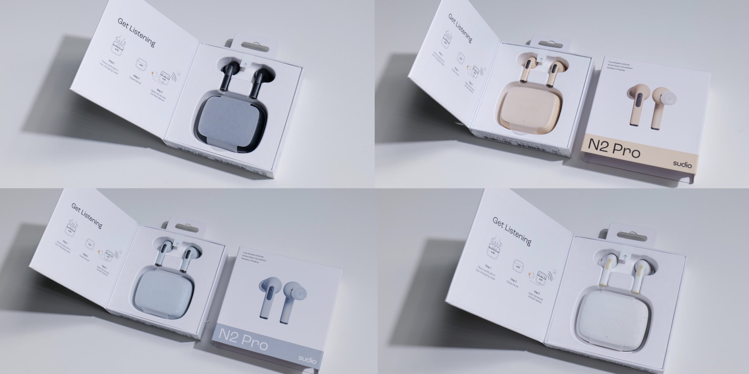 Sudio N2 Pro ดีไซน์โดยรวมจะคล้ายกับรุ่นก่อนหน้า สีของตัวเคสและหูฟังจะเน้นไปทางสีโทนมินิมอล มีให้เราเลือกทั้งหมด 4 สีด้วยกันคือ Black, White, Sand, Steel Blue